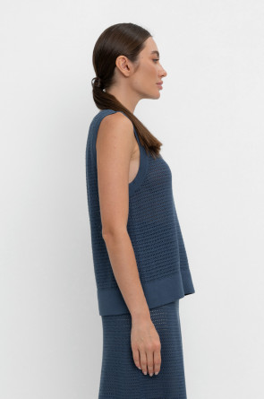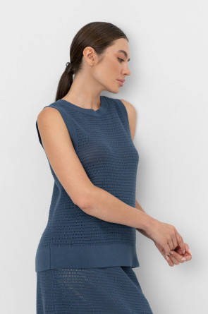 Вязаная ажурная майка. Состав 50% хлопок, 50% акрил. Благодаря акрилу в составе изделие не пилингуется.