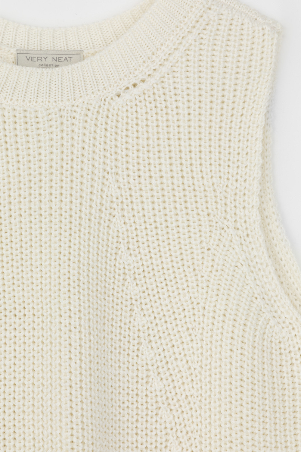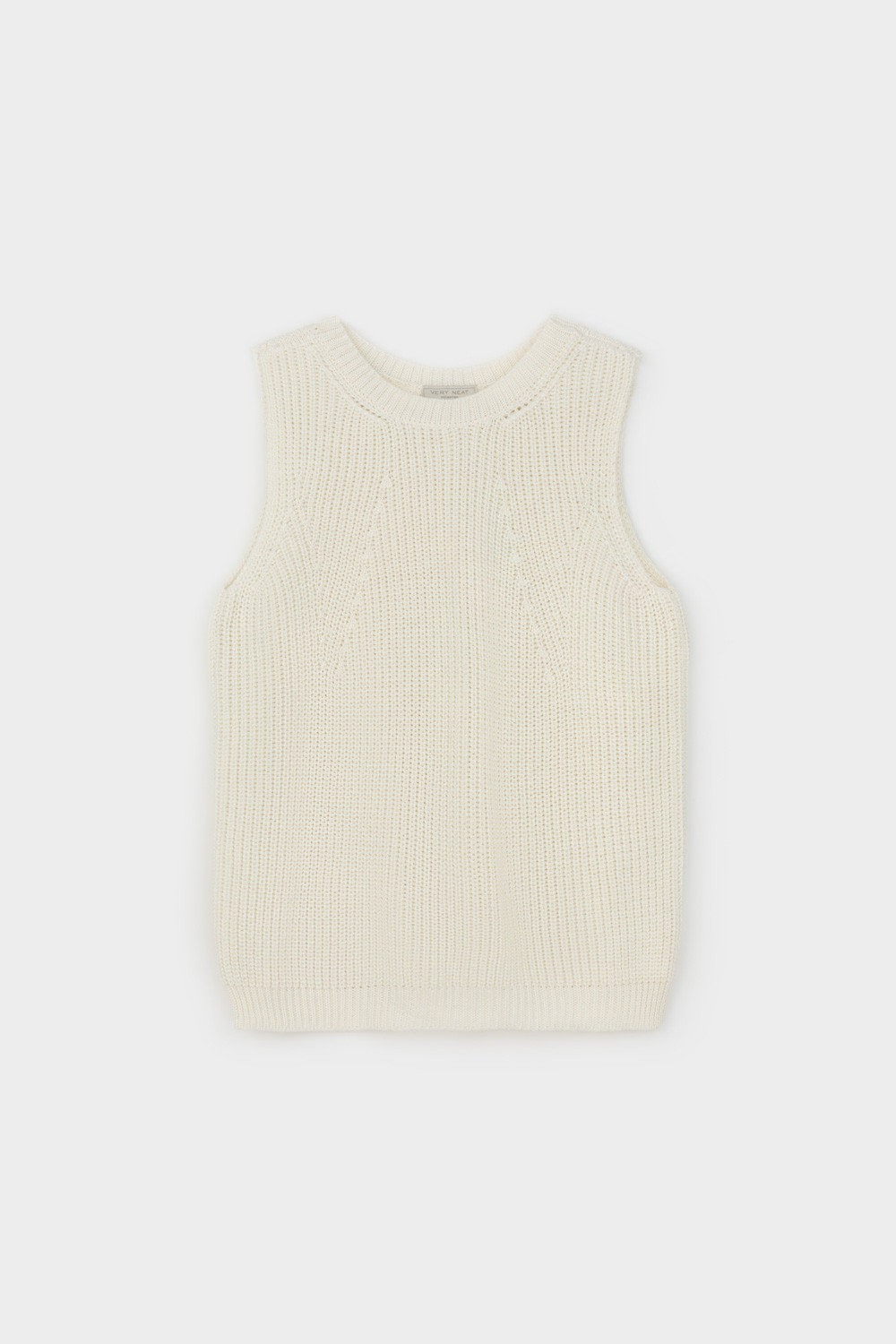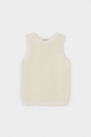 Нежный топ в классическом переплетении нитей молочного цвета выполнен из итальянской хлопковой пряжи. Лаконичный стиль топа позволяет сочетать его в разных образах.