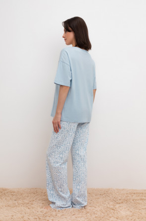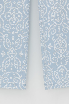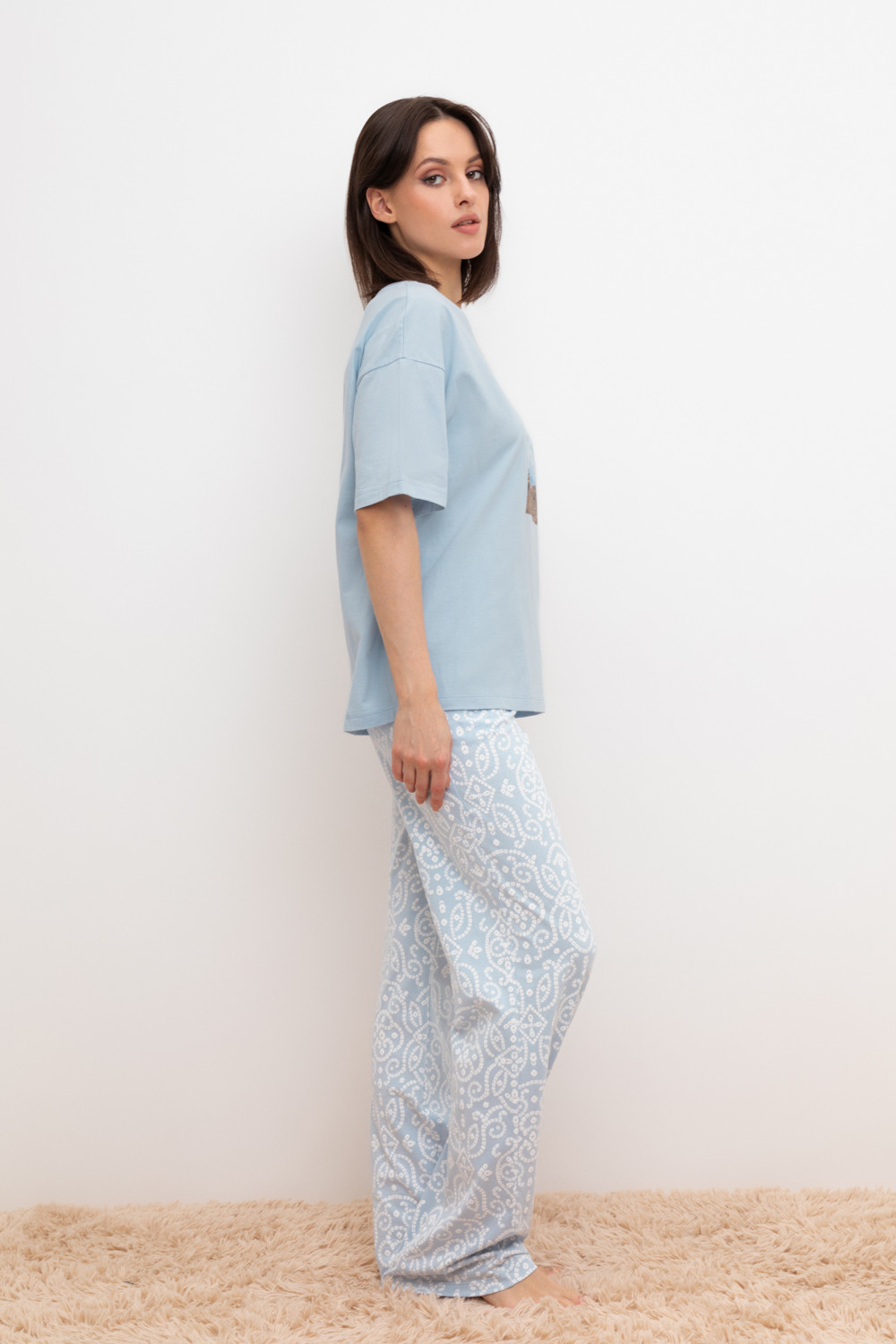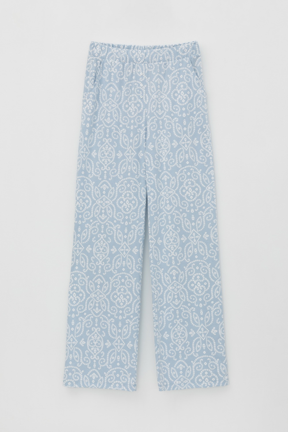 Лёгкие комфортные брюки из набивного трикотажа из 100% натурального хлопка. Модель с поясом на резинке, декоративным гульфиком с пуговицами и боковыми карманами. Низ изделия обработан плоскими швами. Гладкий материал приятен к телу, не теряет форму и позволяет коже дышать.