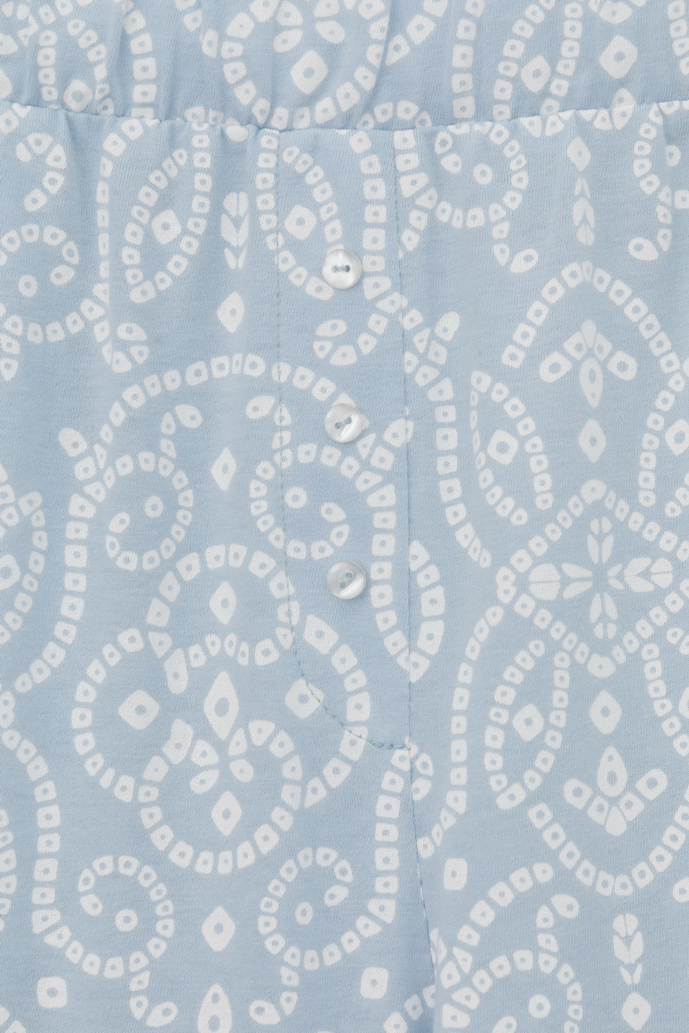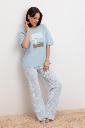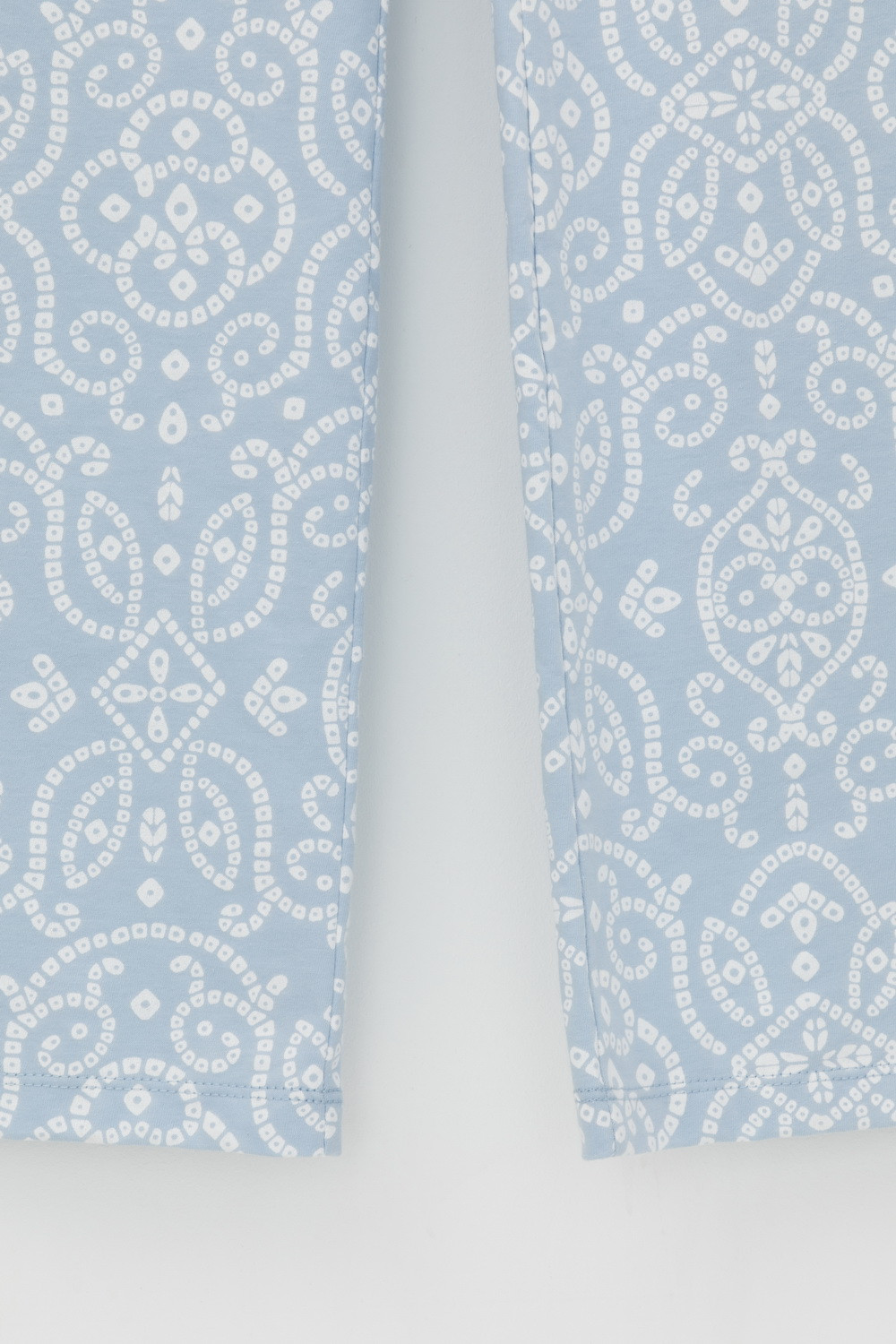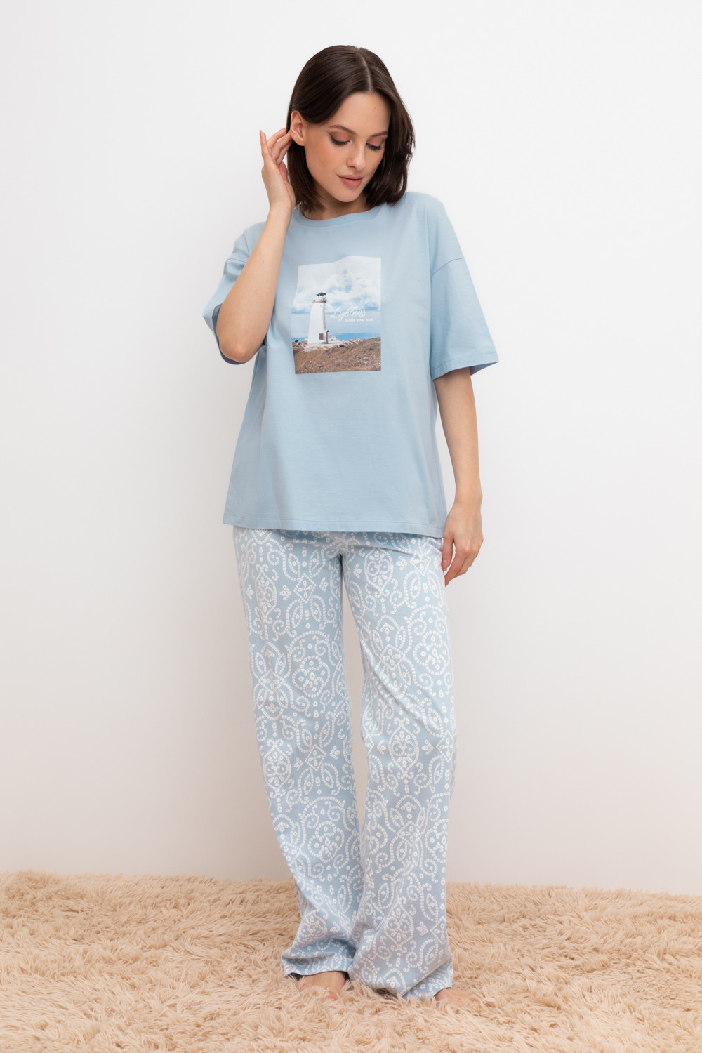 Лёгкие комфортные брюки из набивного трикотажа из 100% натурального хлопка. Модель с поясом на резинке, декоративным гульфиком с пуговицами и боковыми карманами. Низ изделия обработан плоскими швами. Гладкий материал приятен к телу, не теряет форму и позволяет коже дышать.
