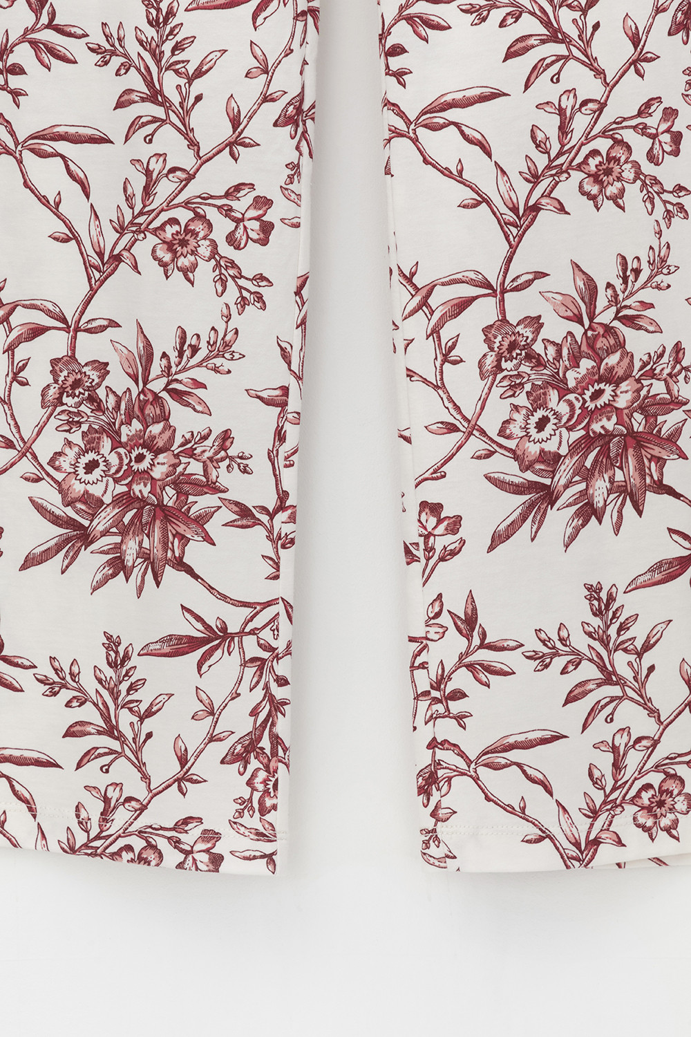 Лёгкие комфортные брюки из набивного трикотажа из 100% натурального хлопка. Модель с поясом на резинке, декоративным гульфиком с пуговицами и боковыми карманами. Низ изделия обработан плоскими швами. Гладкий материал приятен к телу, не теряет форму и позволяет коже дышать.