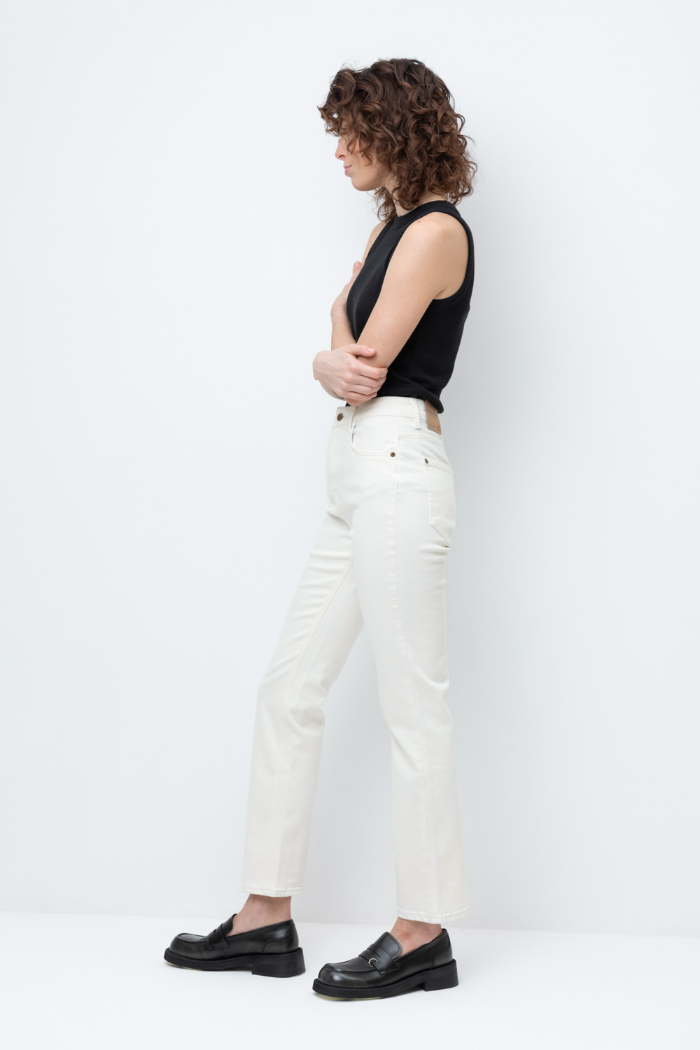 Женские джинсы из мягкого стрейч денима прямого кроя с завышенной линией талии. Модель с классическими 5 карманами и фирменной нашивкой из эко кожи Very Neat.
