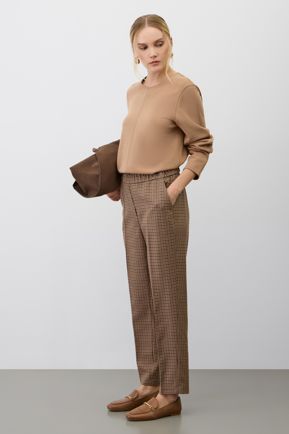 Брюки в клетку из натуральной шерсти. Шерсть обладает замечательными теплоизоляционными свойствами, что позволяет чувствовать себя комфортно даже при низких температурах.
