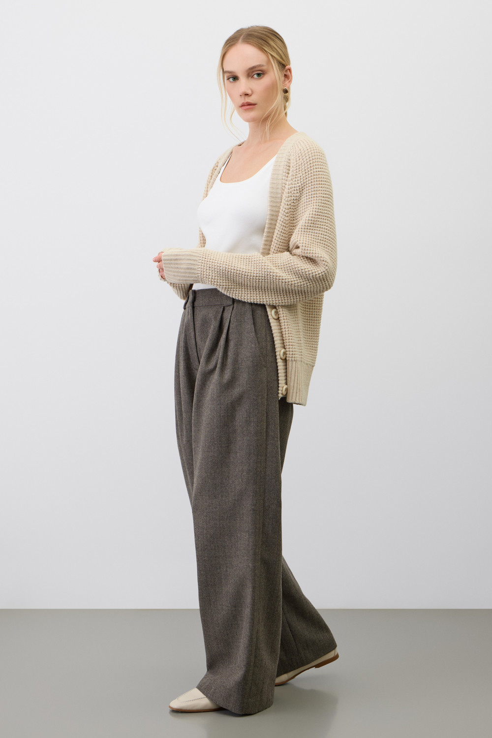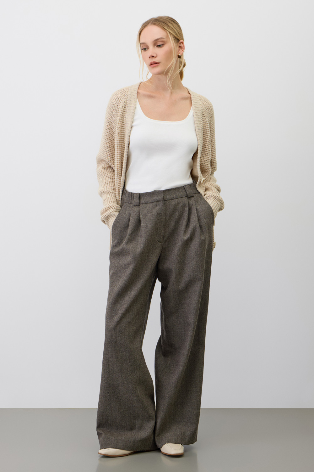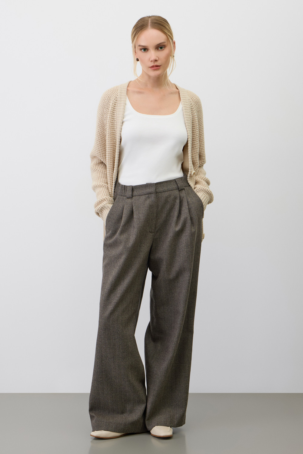 Брюки палаццо созданы под влиянием тенденций мировой моды. Премиальная шерсть гарантирует износостойкость и устойчивость к деформации, превращая покупку в разумную инвестицию. Материал отличается экологичностью и полным отсутствием токсичных компонентов. Благодаря натуральной шерсти, изделие обладает исключительными теплоизоляционными свойствами и приятной тактильностью. Свободный силуэт с элегантными складками выгодно подчеркнет женственность.
