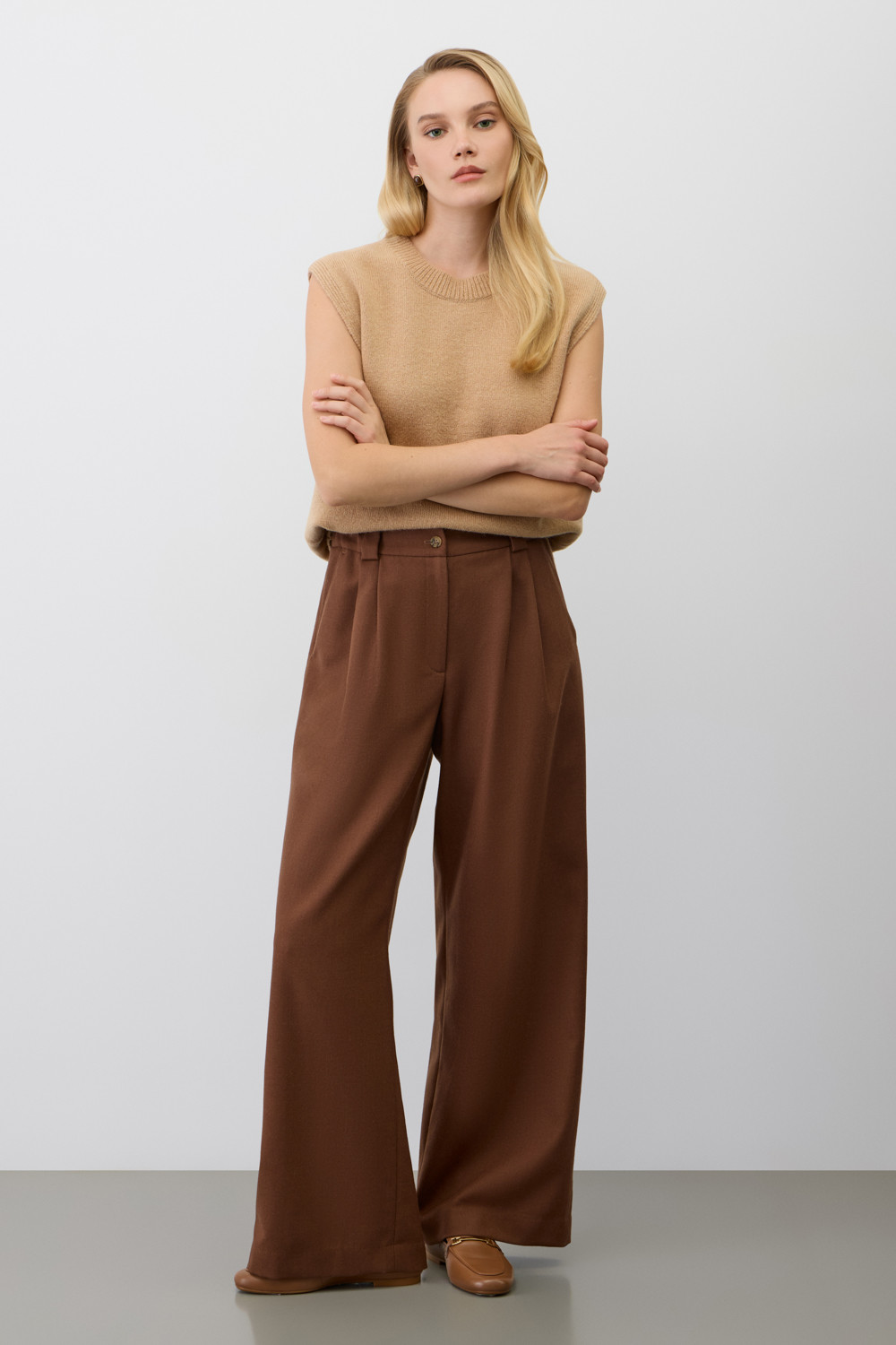 Брюки палаццо созданы под влиянием тенденций мировой моды. Премиальная шерсть гарантирует износостойкость и устойчивость к деформации, превращая покупку в разумную инвестицию. Материал отличается экологичностью и полным отсутствием токсичных компонентов. Благодаря натуральной шерсти, изделие обладает исключительными теплоизоляционными свойствами и приятной тактильностью. Свободный силуэт с элегантными складками выгодно подчеркнет женственность.