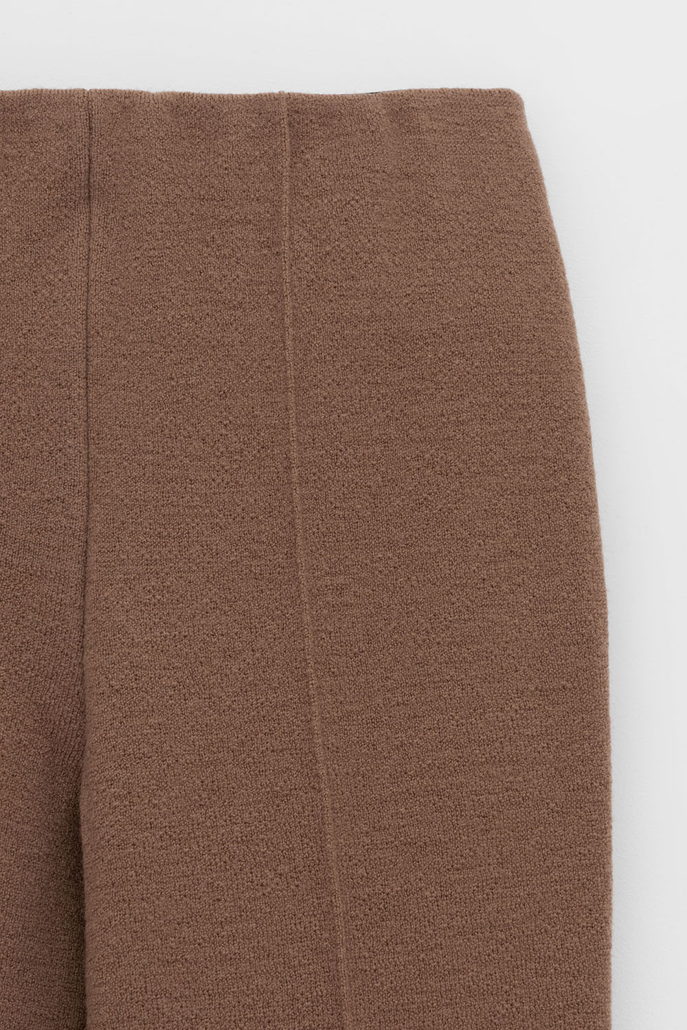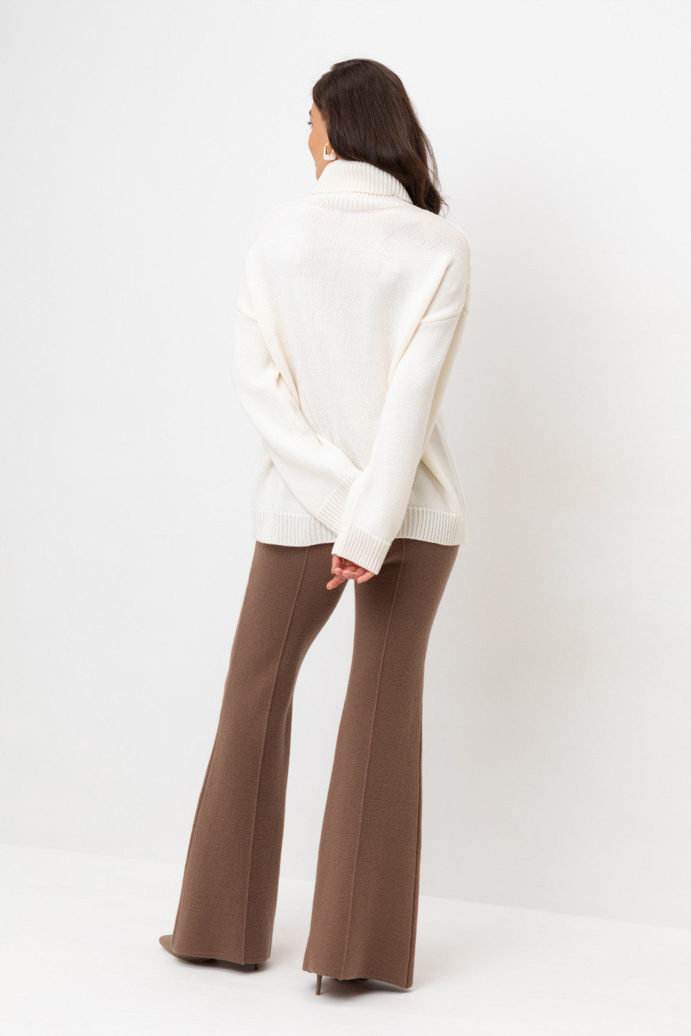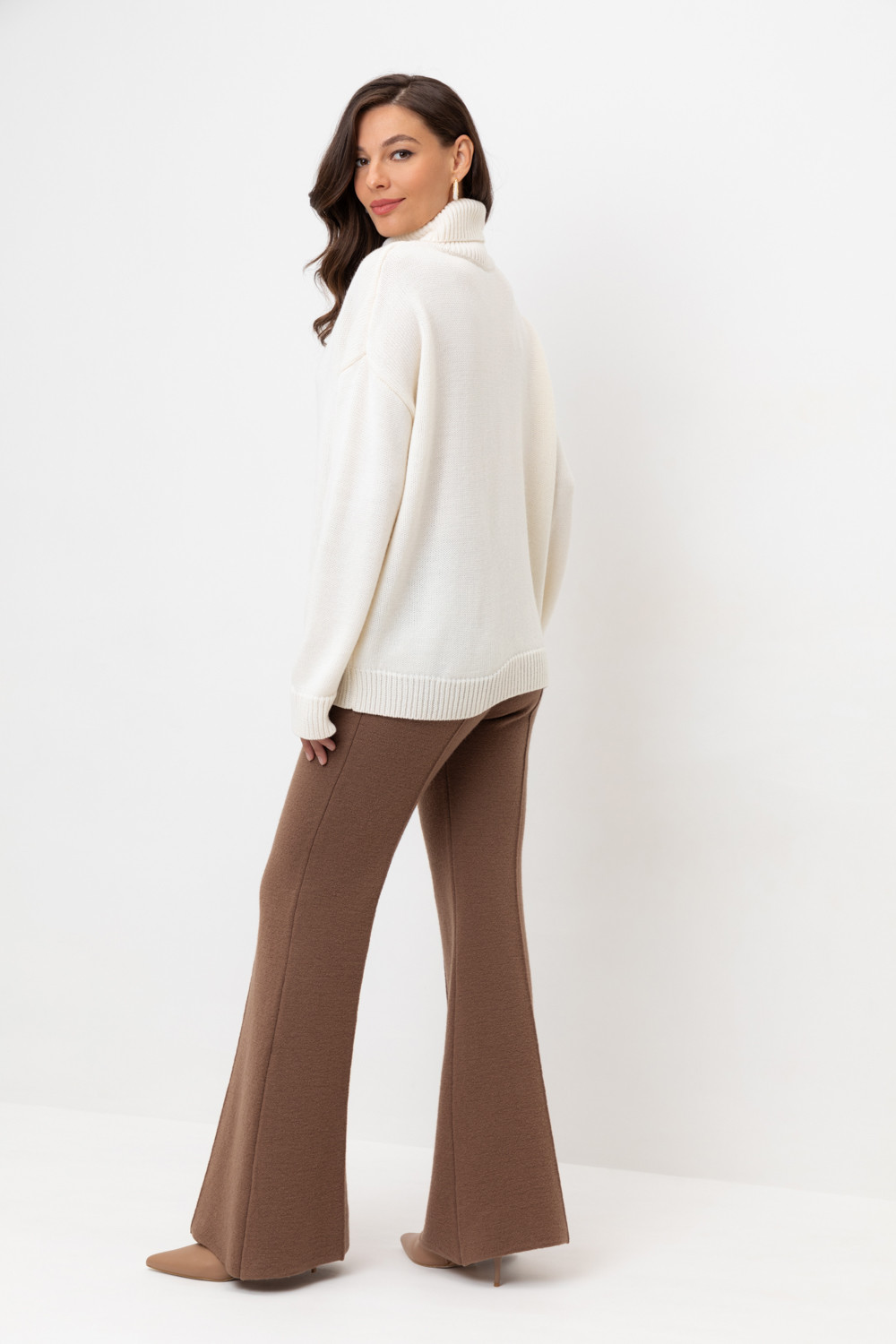 Удобные вязаные брюки со стрелкой из 100% шерсти. Шерсть в составе хорошо сохраняет тепло. Пояс на резинке.