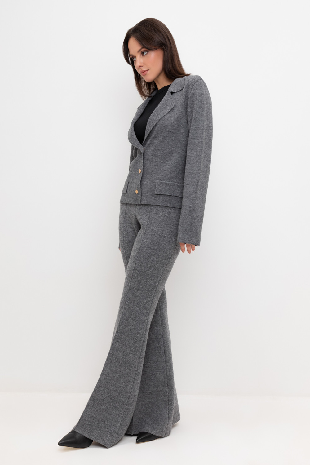 Удобные вязаные брюки со стрелкой из 100% шерсти. Шерсть в составе хорошо сохраняет тепло. Пояс на резинке.