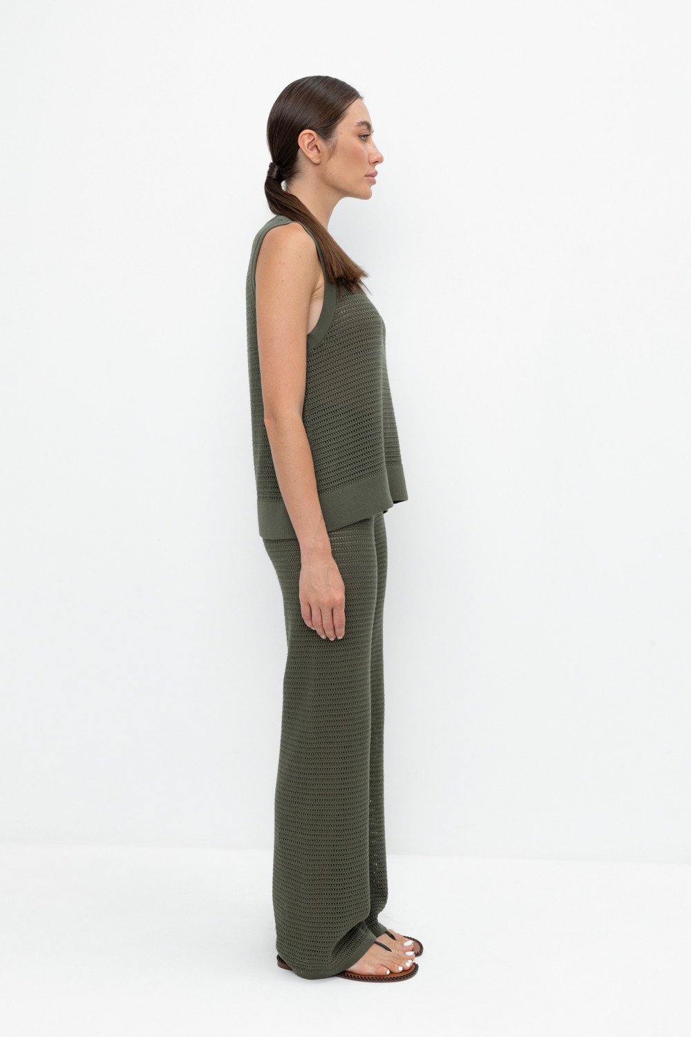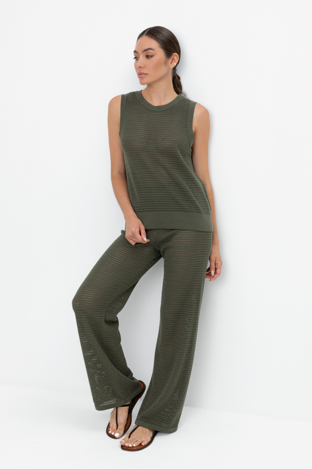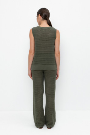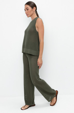 Вязаные ажурные свободные брюки с подкладом. Состав 50% хлопок, 50% акрил. Благодаря акрилу в составе изделие не пилингуется.