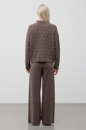Брюки из изысканной пряжи. Уникальное сочетание натуральных волокон обеспечивает непревзойденную мягкость. Меринос в сочетании с кашемиром отлично удерживает тепло, а вискоза придает шелковистость и приятный блеск.