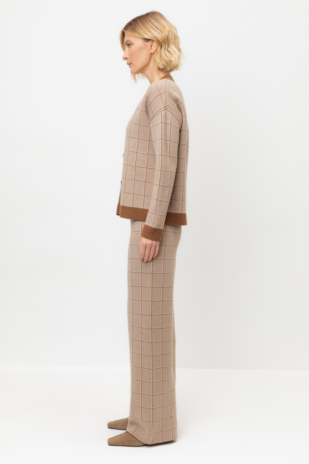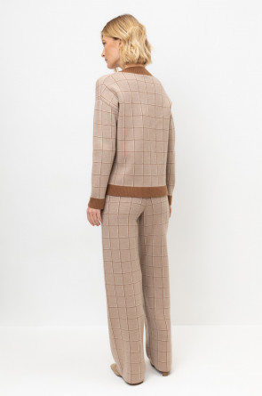 Удобные вязаные брюки прямого силуэта. Связаны жаккардом из мягкой полушерстяной пряжи. В составе 50% шерсти и 50% акрила. Шерсть мериноса в составе сохраняет тепло, а благодаря волокнам акрила изделие мягкое и дольше сохраняет форму. Плотная фактура вязания согревает и сохраняет форму во время носки.