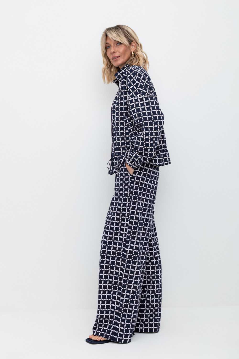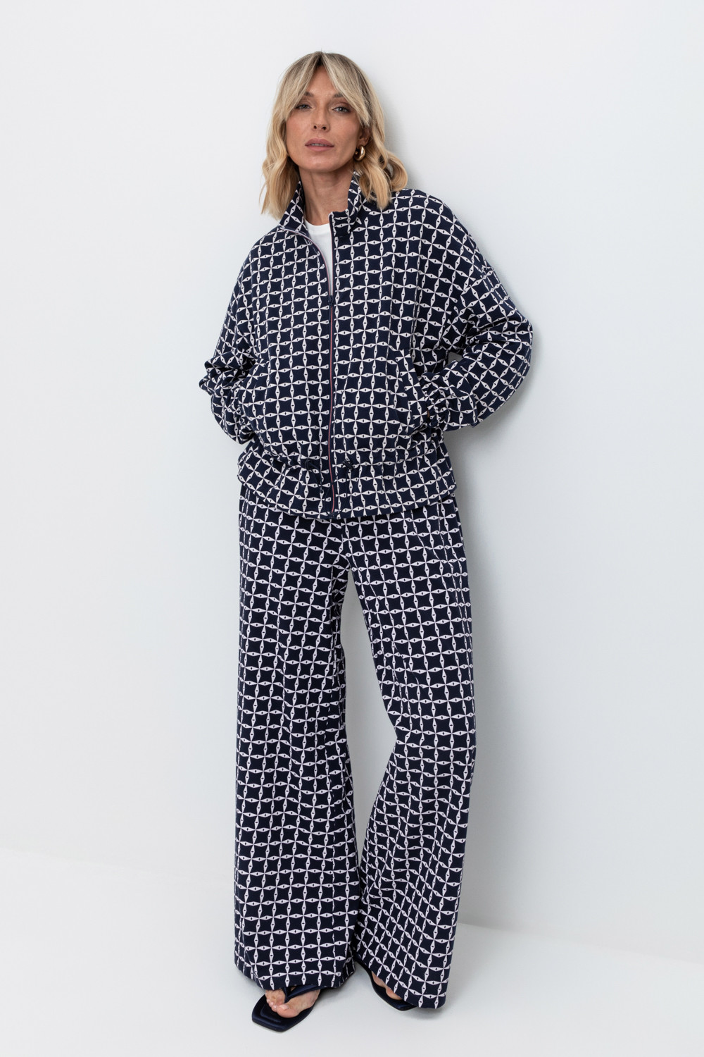 Брюки прямого свободного кроя с боковыми карманами из набивного пике.