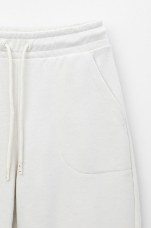 Теплые брюки зауженного кроя с боковыми карманами из мягкого трикотажного футера трёхнитки. Пояс со шнурком позволяет регулировать посадку.