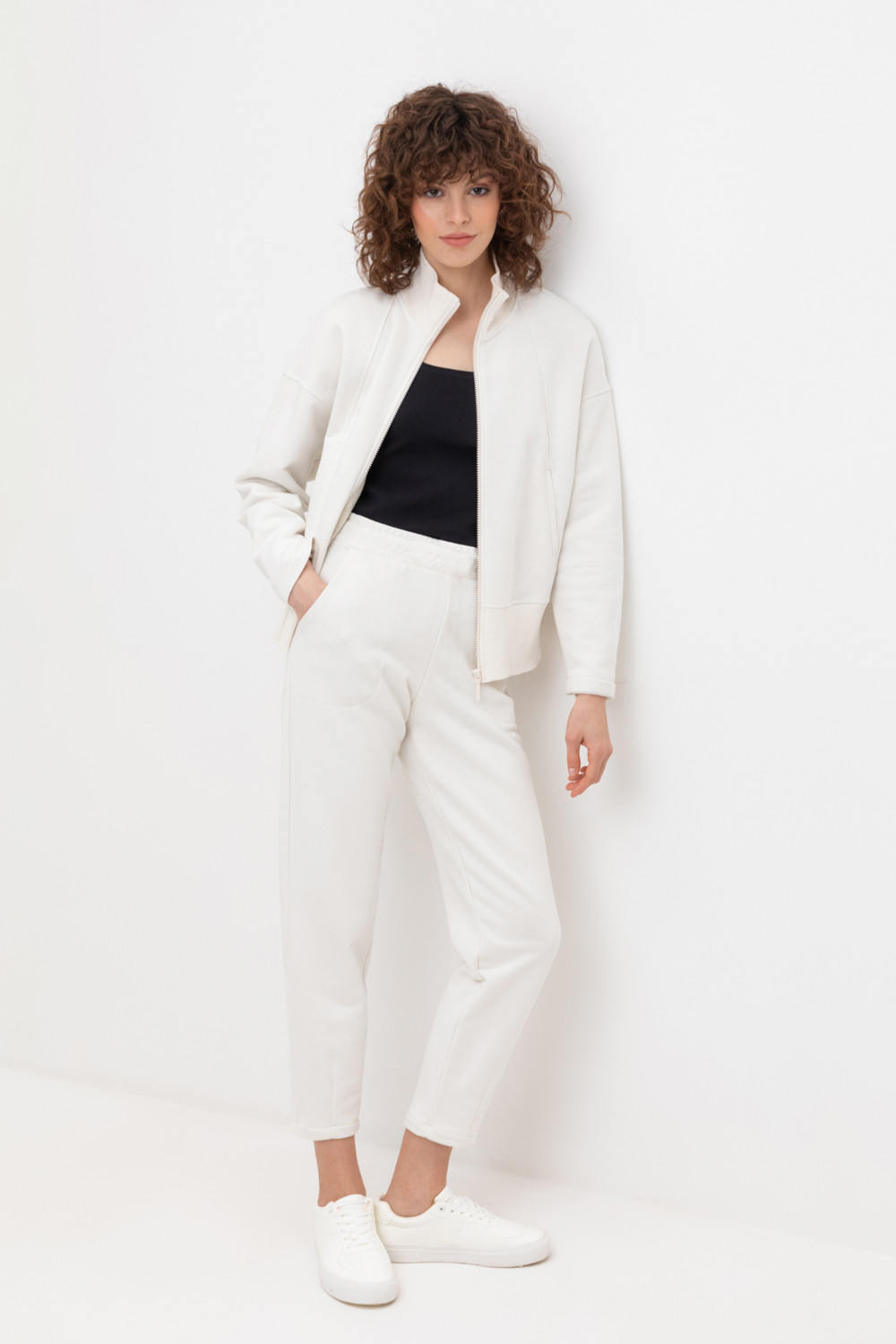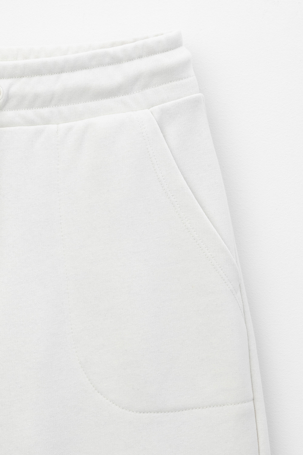 Теплые брюки зауженного кроя с боковыми карманами из мягкого трикотажного футера трёхнитки.