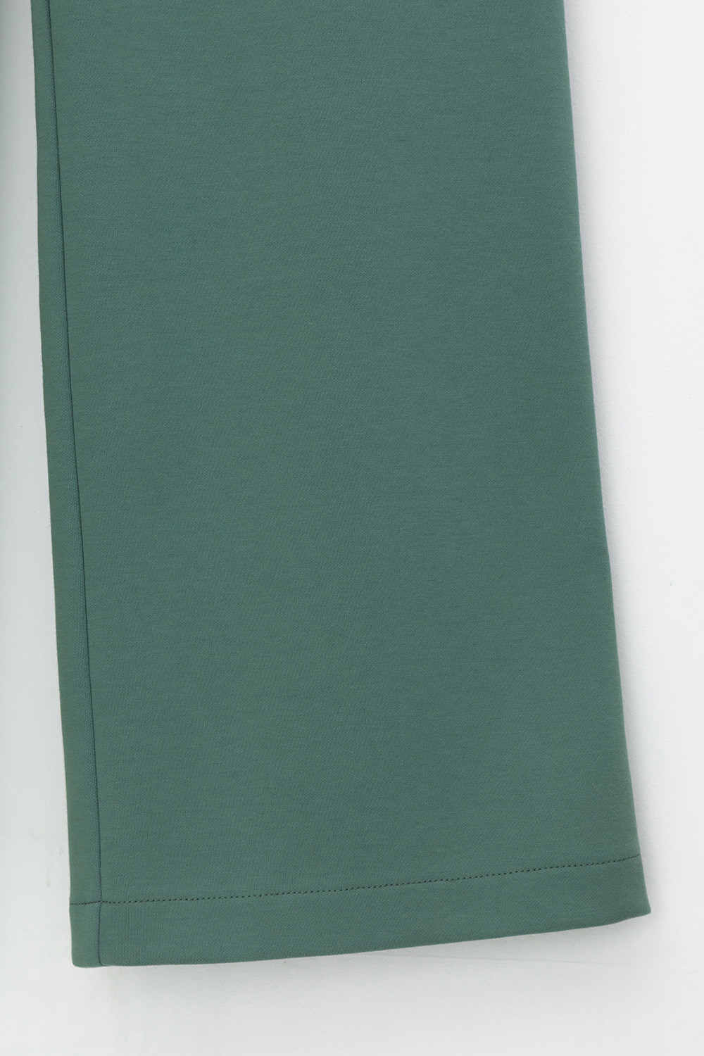 Свободные женские брюки с боковыми карманами из плотного гладкого трикотажа интерлок. Застегиваются на молнию и кнопку. Низ обработан плоскими швами.