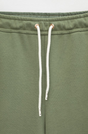 Теплые брюки с манжетами на резинке и боковыми карманами из мягкого трикотажного футера трёхнитки. Пояс со шнурком позволяет регулировать посадку.