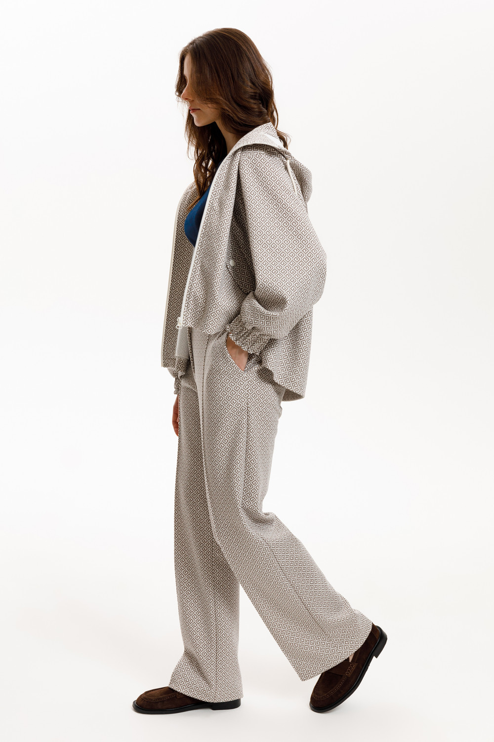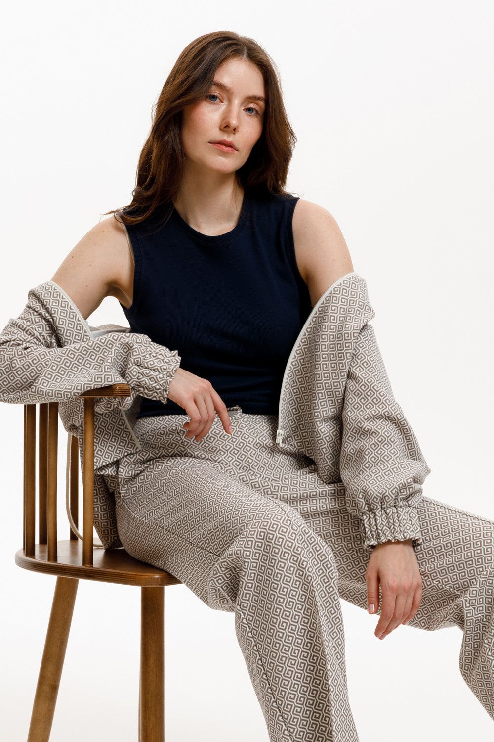Брюки из премиального трикотажа DOUBLE FACE. Основной акцент в дизайне изделия - стрелки с отстрочкой, создающие эффект длинных ног. Застежка на молнию и дополнительная застежка на кнопку обеспечивают удобную посадку. Натуральный состав трикотажа приятен к телу, что делает его комфортным при носке в любое время года.