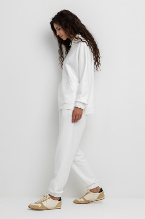Теплые брюки с манжетами на резинке и боковыми карманами из мягкого трикотажного футера трёхнитки.