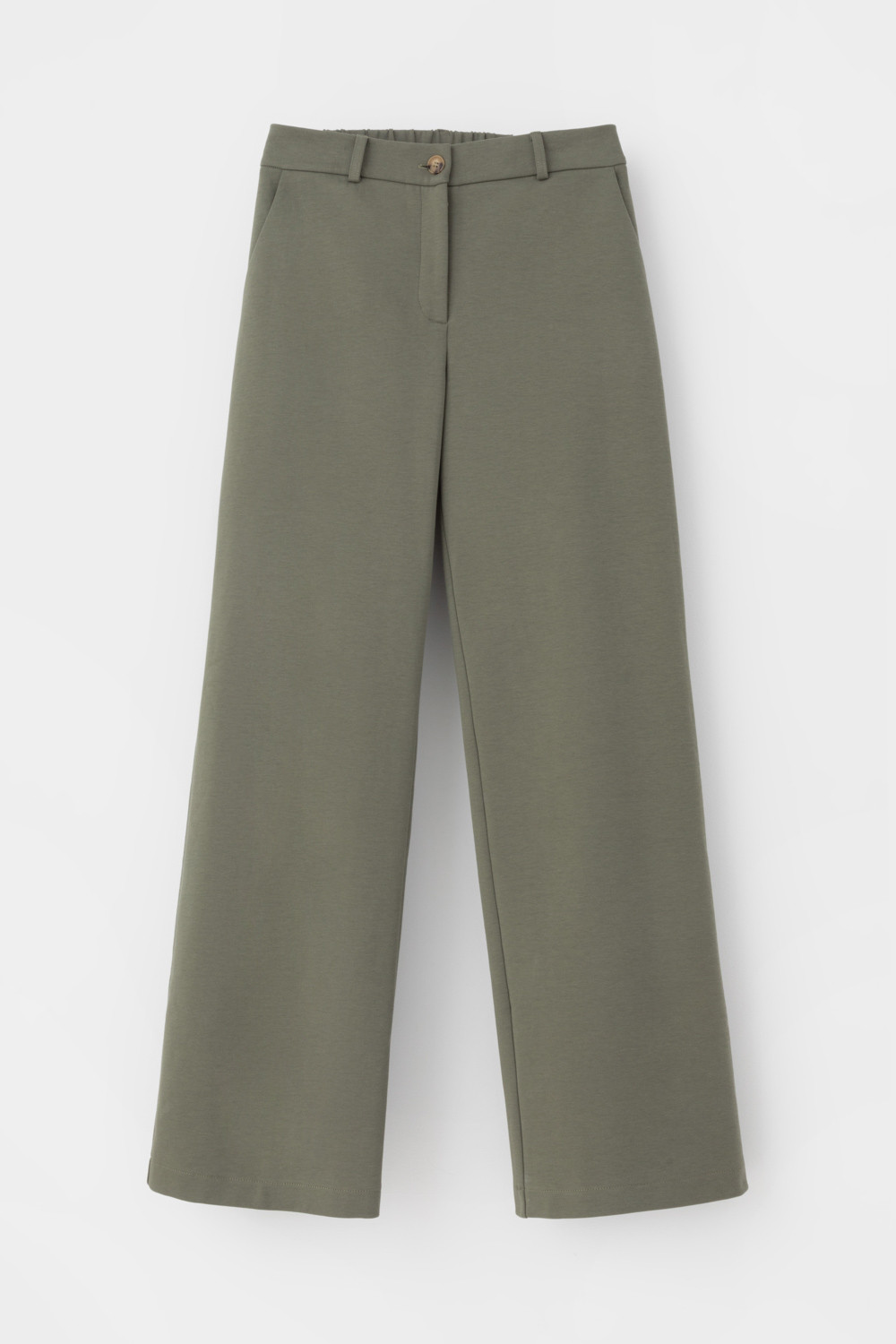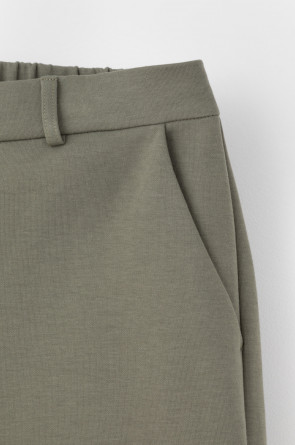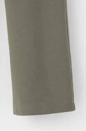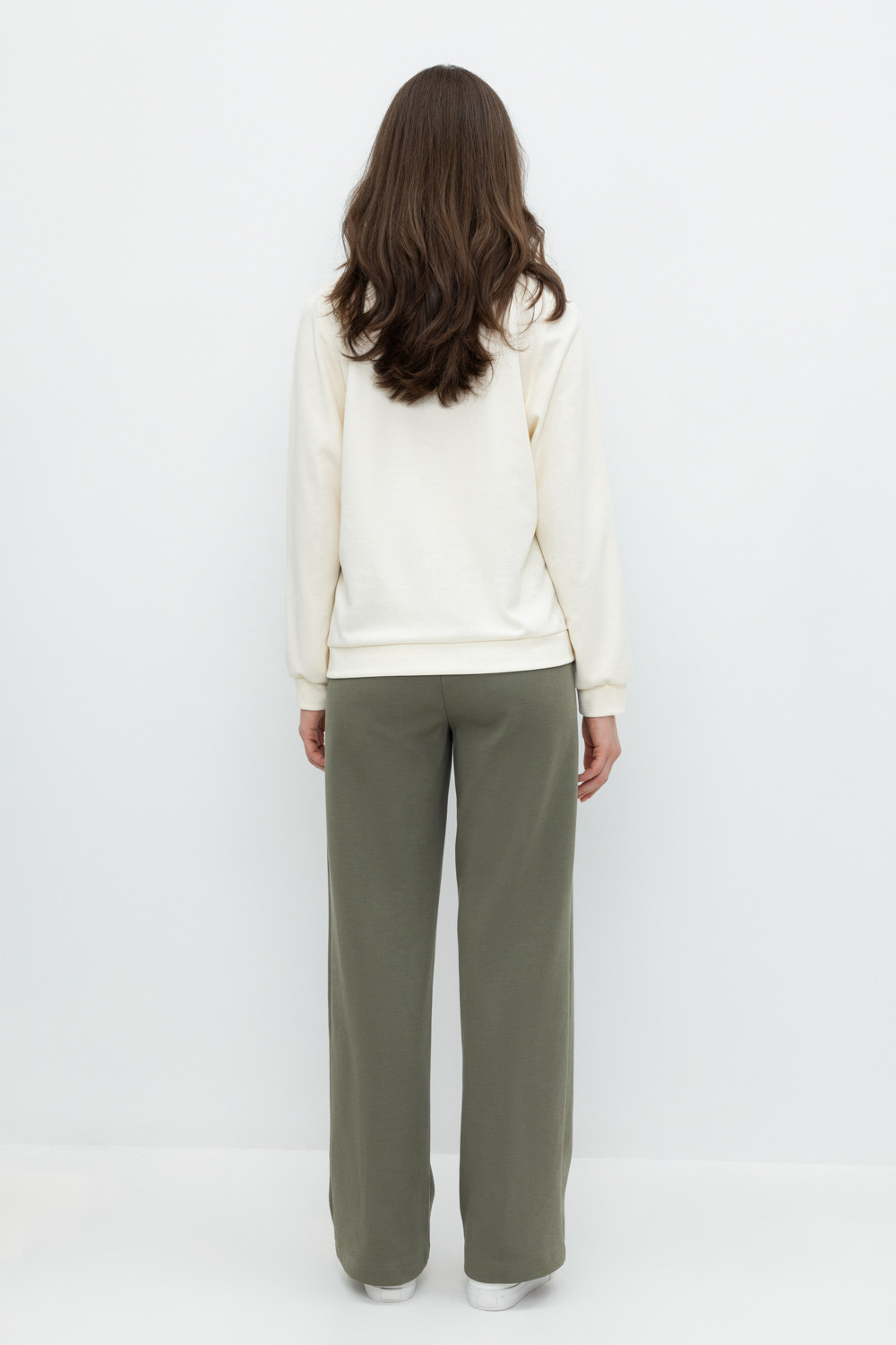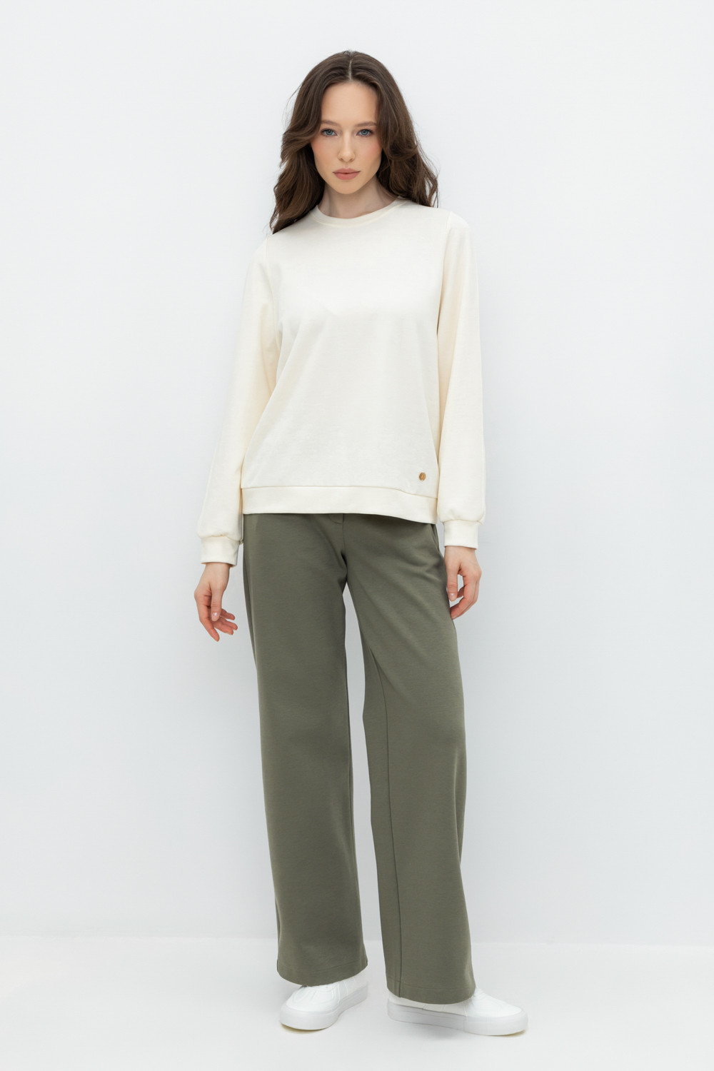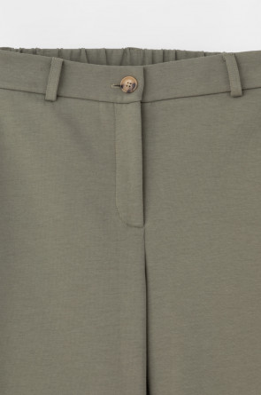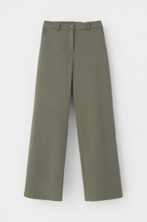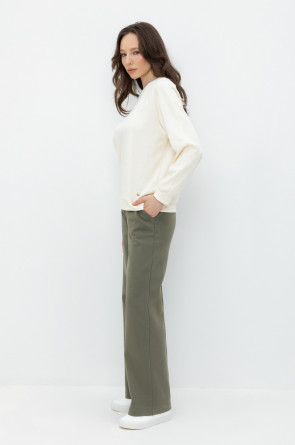 Свободные женские брюки с боковыми карманами из плотного гладкого трикотажа интерлок. Застегиваются на молнию и кнопку. Низ обработан плоскими швами.