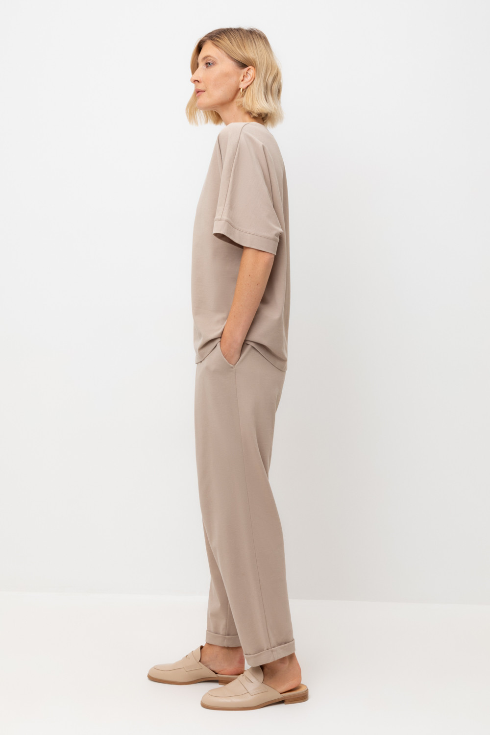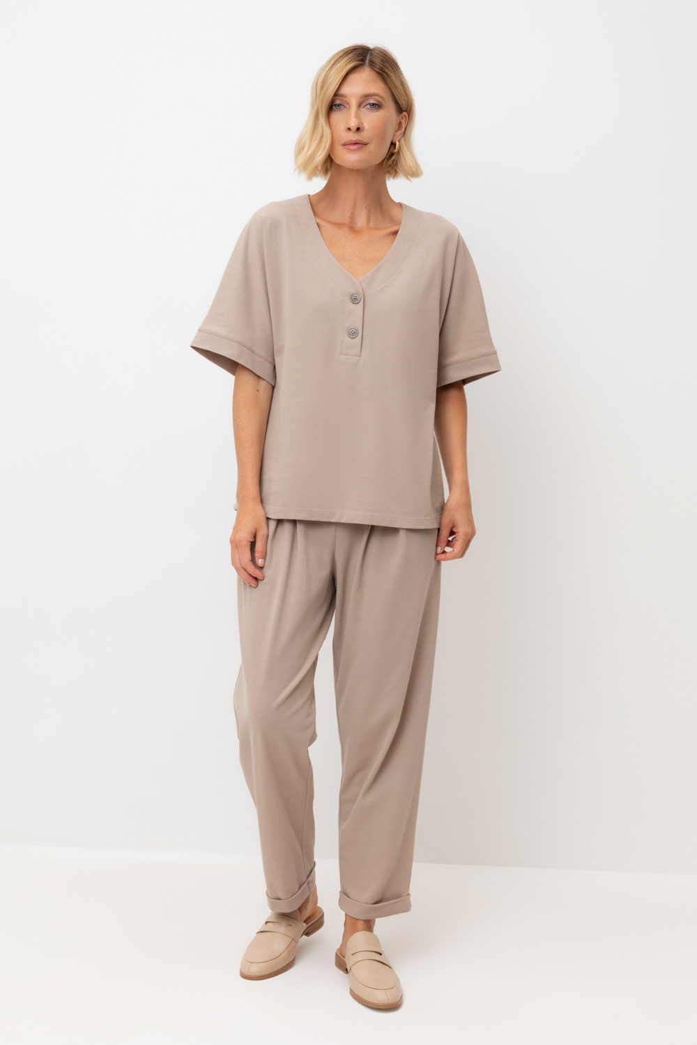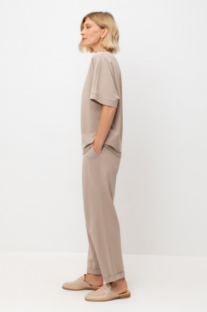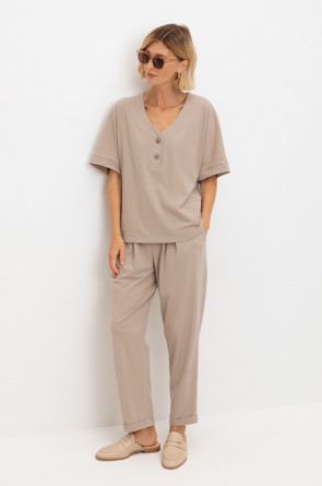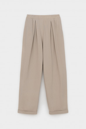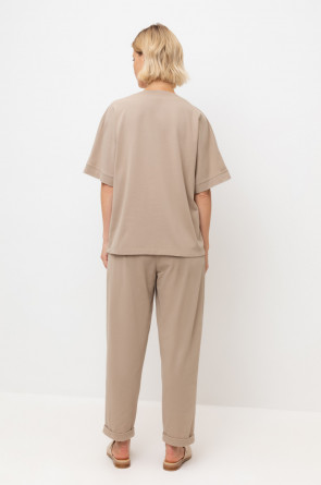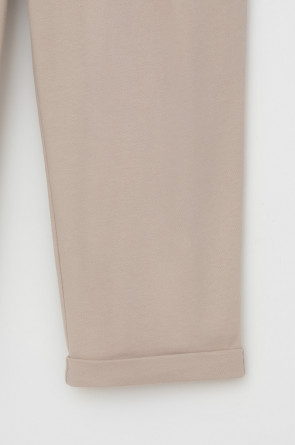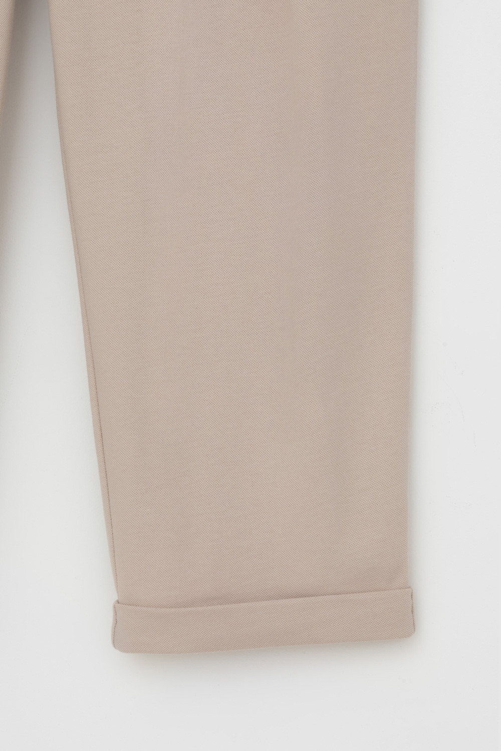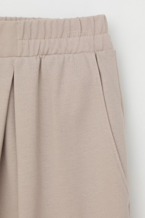 Трикотажные брюки с эластичным поясом, изготовленные из легкого хлопка с рельефной текстурой, дарят ощущение комфорта и легкости. Имитация застежки и складки спереди придают изделию свободный силуэт. В сочетании с рубашкой-поло из этой коллекции, вы создадите стильный образ для теплых летних дней.