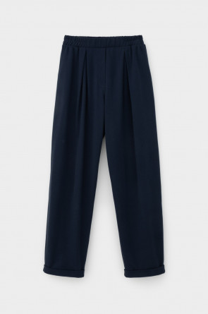 Трикотажные брюки с эластичным поясом, изготовленные из 100% хлопка, дарят ощущение комфорта и легкости. Имитация застежки и складки спереди придают изделию свободный силуэт. В сочетании с рубашкой-поло из этой коллекции, вы создадите стильный образ для теплых летних дней.