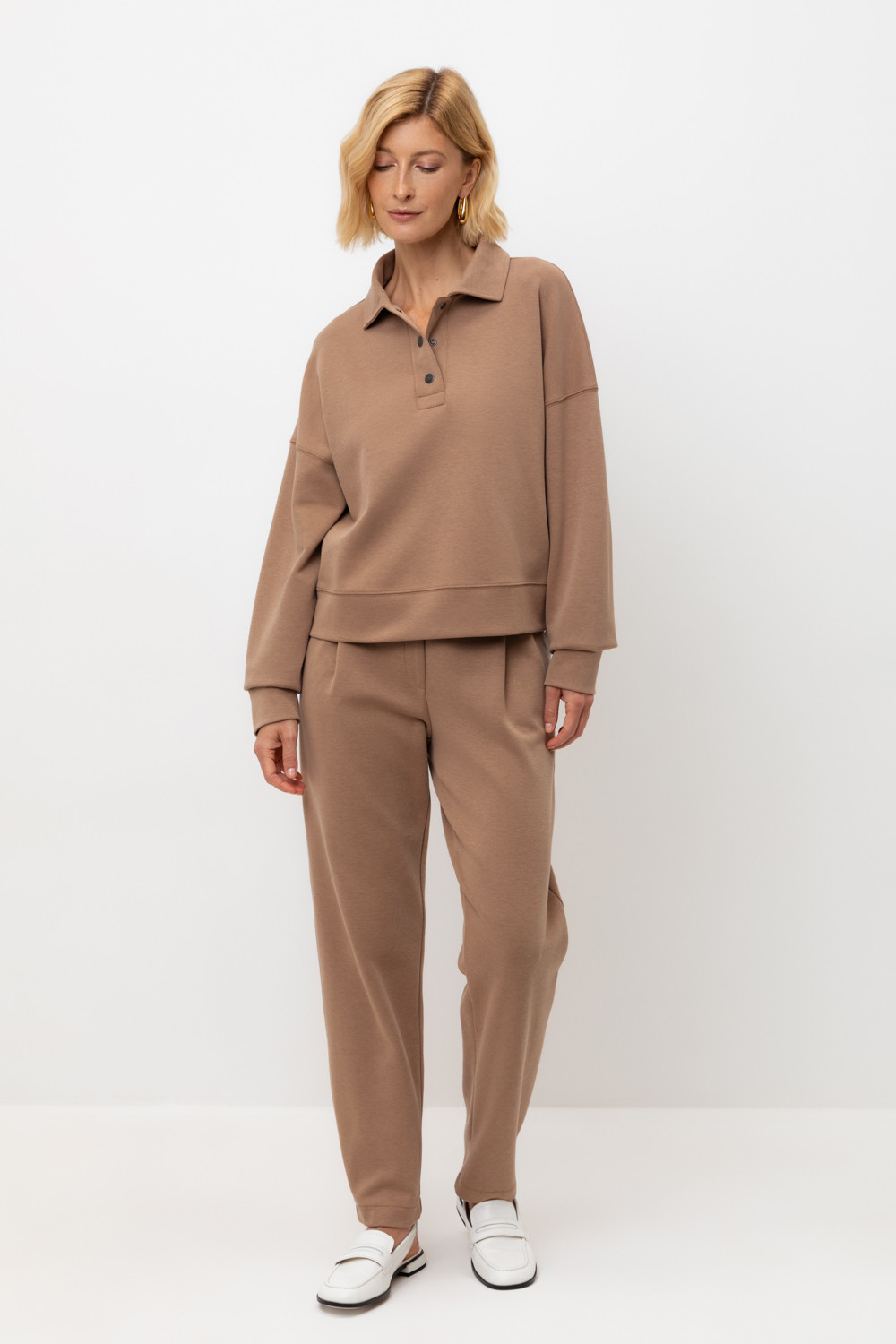 Брюки из высококачественного трикотажного полотна. За счет фактуры переплетения и специальных обработок сохраняют силуэт и форму, а хлопок в составе добавляет комфорт. Эластичный пояс обеспечивает идеальную посадку. Карманы и имитация гульфика придают брюкам классический стиль. В сочетании с джемпером-поло из этой коллекции вы создадите стильный образ для летних дней.