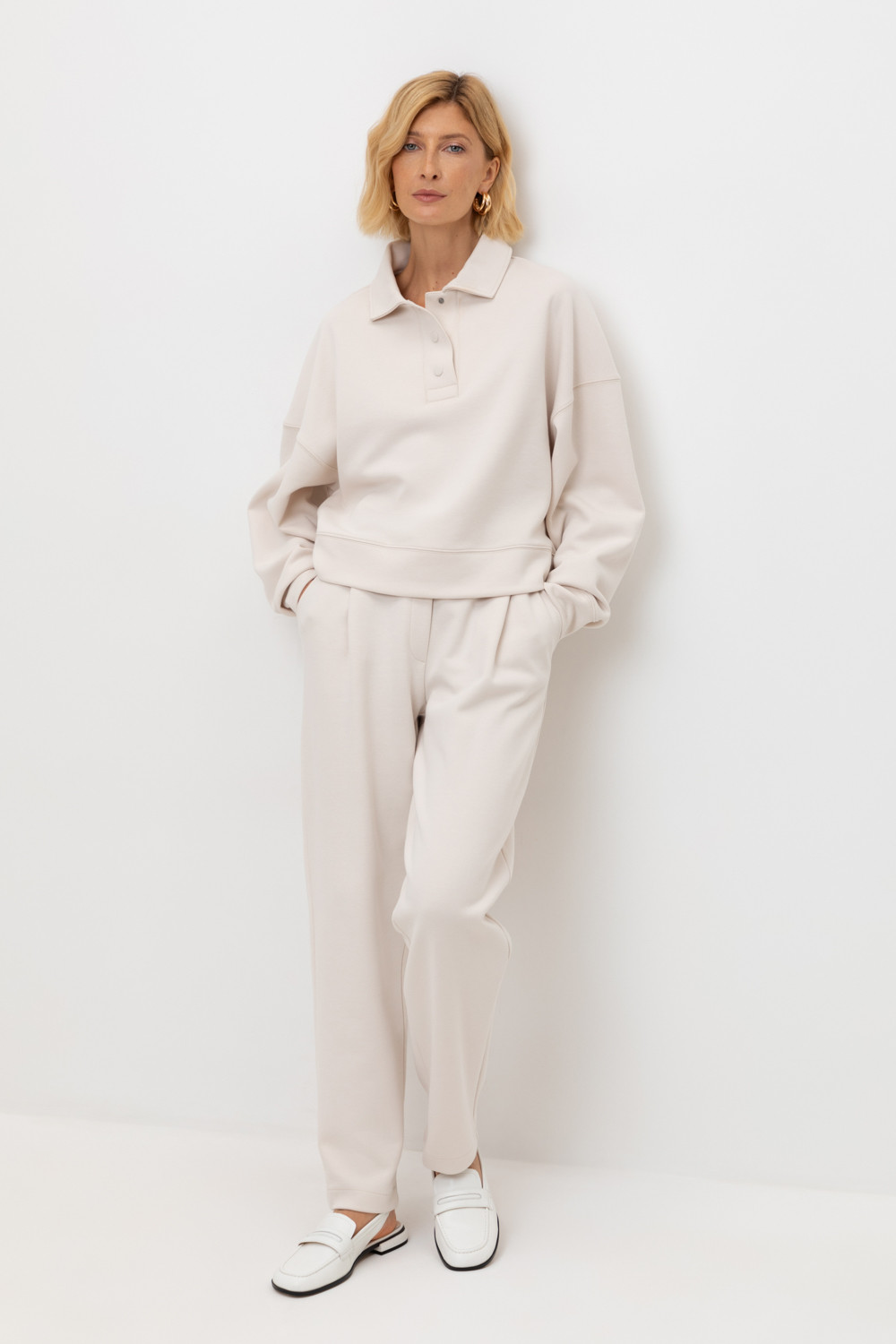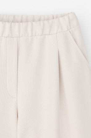 Брюки из высококачественного трикотажного полотна. За счет фактуры переплетения и специальных обработок сохраняют силуэт и форму, а хлопок в составе добавляет комфорт. Эластичный пояс обеспечивает идеальную посадку. Карманы и имитация гульфика придают брюкам классический стиль. В сочетании с джемпером-поло из этой коллекции вы создадите стильный образ для летних дней.