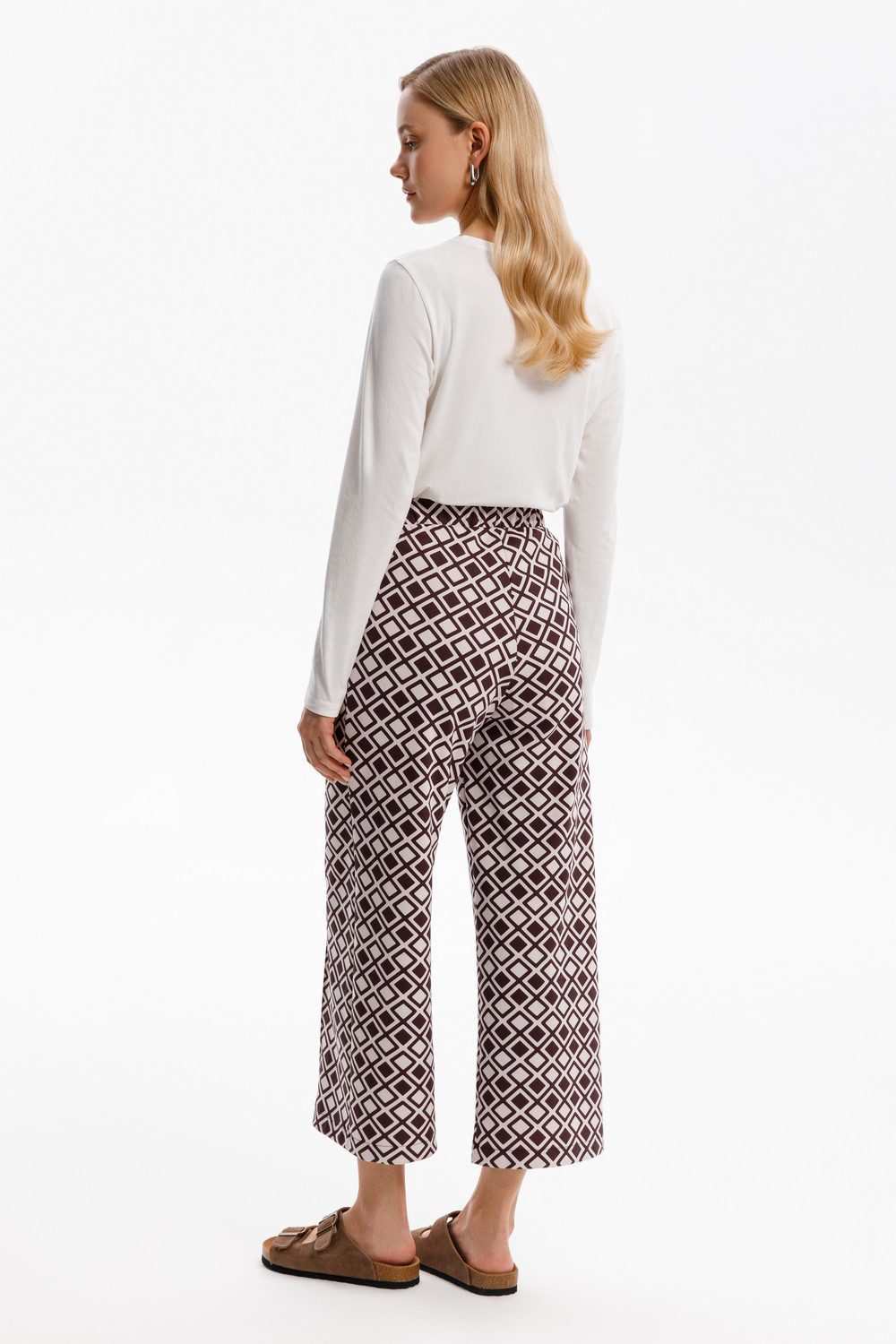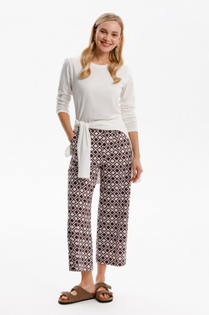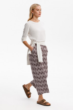 Летние брюки из премиального трикотажа DOUBLE FACE. За счет фактуры переплетения и специальных обработок сохраняют силуэт и форму. Хлопок в составе добавляет комфорта при носке. Длина брюк 7/8, по передней части застрочена стрелка. В сочетании с жакетом из этой коллекции вы создадите элегантный образ для летних дней.