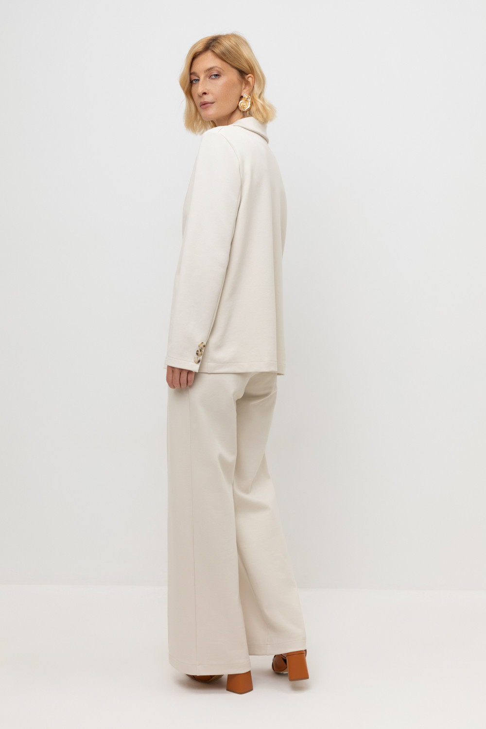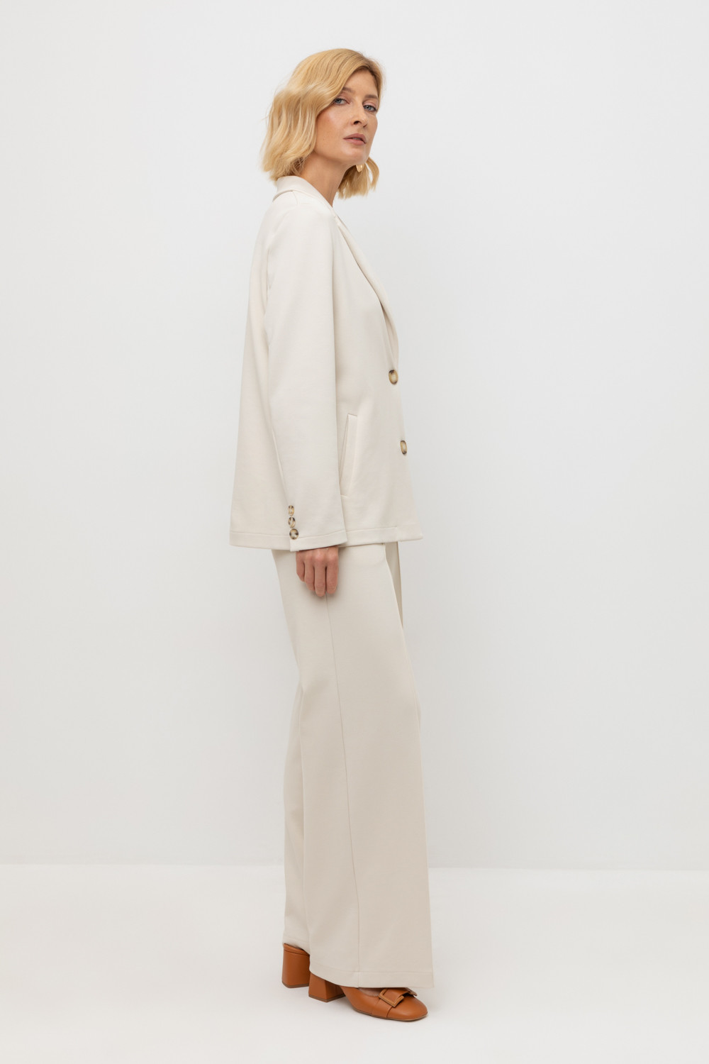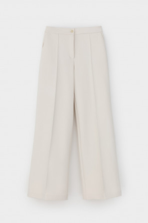 Брюки свободного кроя из премиального трикотажа DOUBLE FACE с добавлением спандекса. Основной акцент в дизайне изделия - стрелки с отстрочкой, создающие эффект длинных ног. Застежка на молнию и дополнительная застежка на кнопку обеспечивают надежную посадку и комфорт при носке. Натуральный состав трикотажа приятный к телу позволяет коже дышать, что делает его комфортным при носке в любое время года.