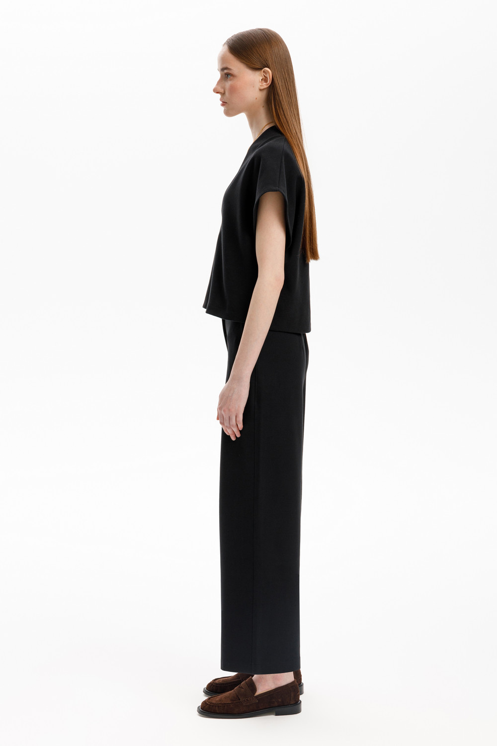 Брюки прямого кроя из премиального трикотажного полотна DOUBLE FACE с добавлением спандекса. Прямой крой подчеркивает силуэт, создавая классический образ. Боковые карманы и застежка спереди придают изделию функциональность.