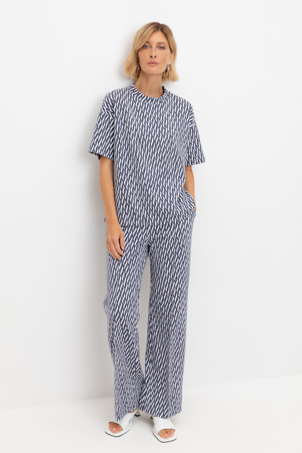 Брюки из премиального трикотажа DOUBLE FACE. За счет фактуры переплетения и специальных обработок сохраняют силуэт и форму. По передней части брюк застрочена стрелка, которая визуально удлиняет ноги. Боковые карманы добавляют функциональности изделию, а эластичная резинка в поясе комфорт при носке. В сочетании с жакетом из этой коллекции вы создадите элегантный образ для летних дней.