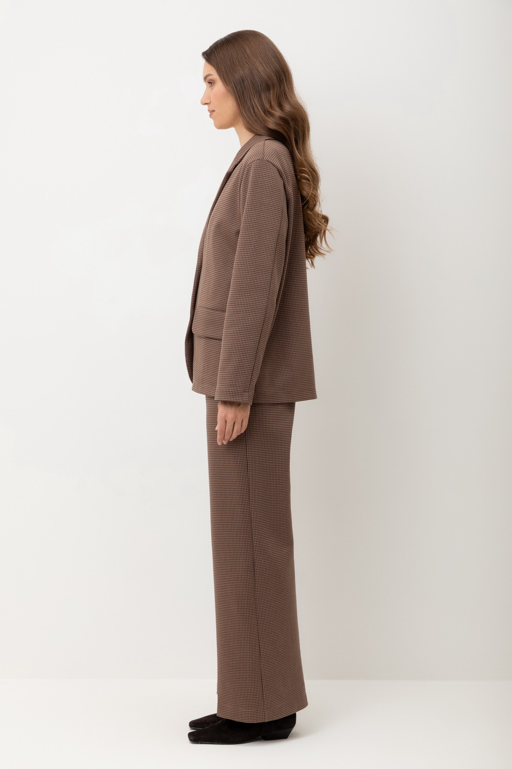 Брюки прямого кроя на резинке изготовлены из высококачественного трикотажного полотна DOUBLE FACE. Особая обработка силиконом придает им легкость и шелковистую текстуру. Прямой крой акцентирует силуэт, формируя элегантный классический образ. Боковые карманы добавляют изделию практичности.