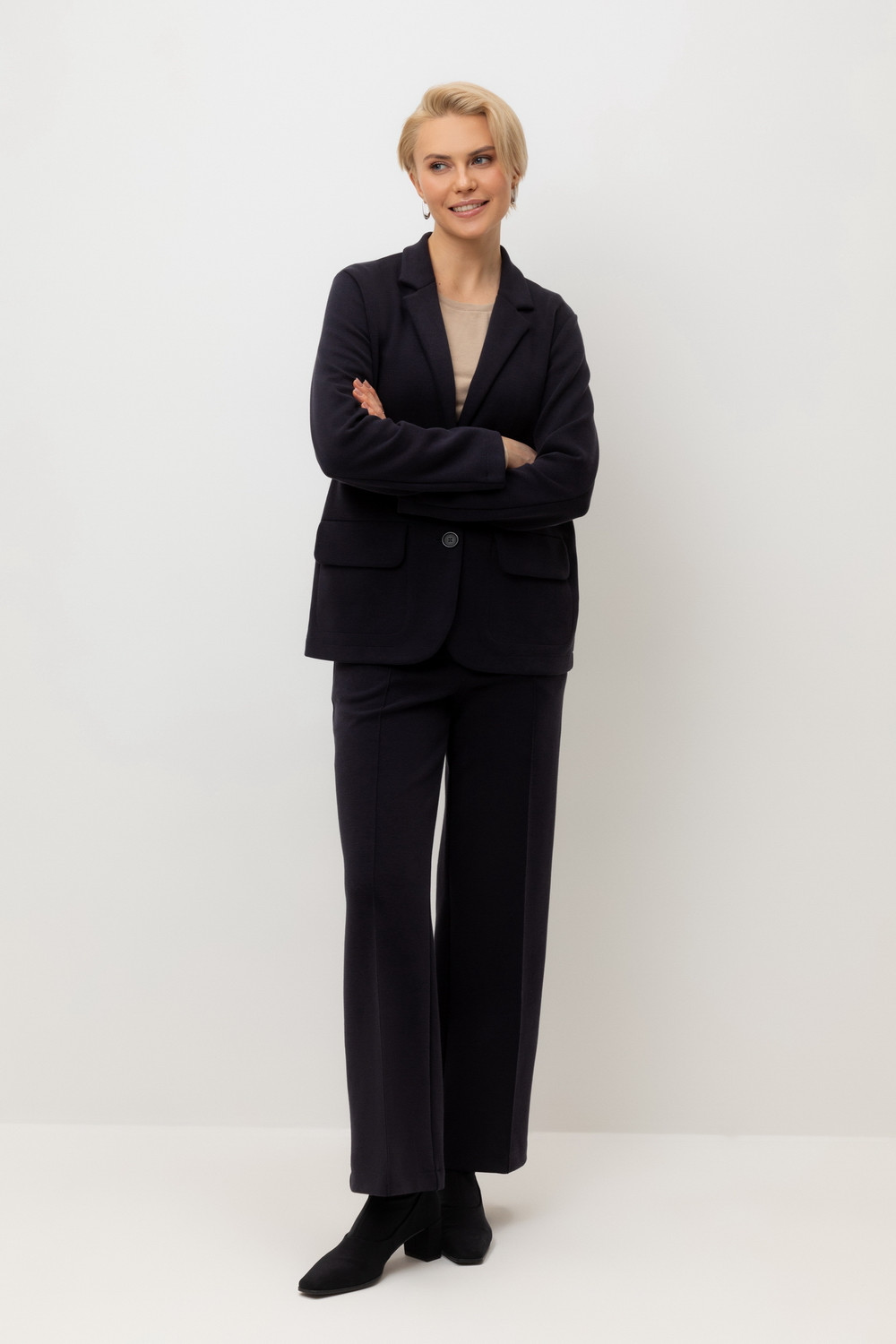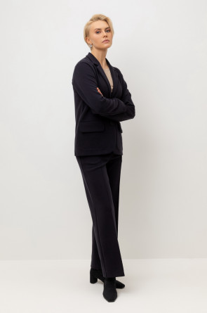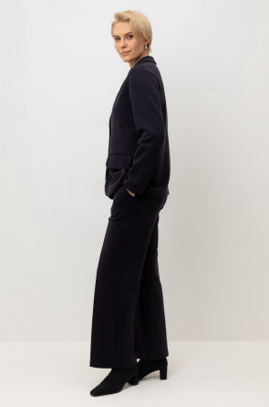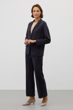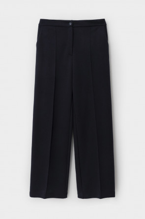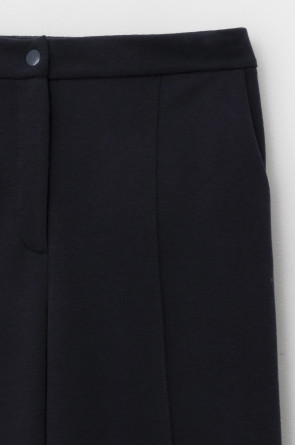 Брюки со стрелкой изготовлены из инновационного трикотажного материала, известного как рибана DOUBLE FACE. Это полотно характеризуется уникальной вязкой, что придает ему исключительную эластичность и мягкость. Современный силуэт и сдержанный дизайн делают их универсальным выбором для самых разных мероприятий — от деловых встреч до непринужденных прогулок по городу.