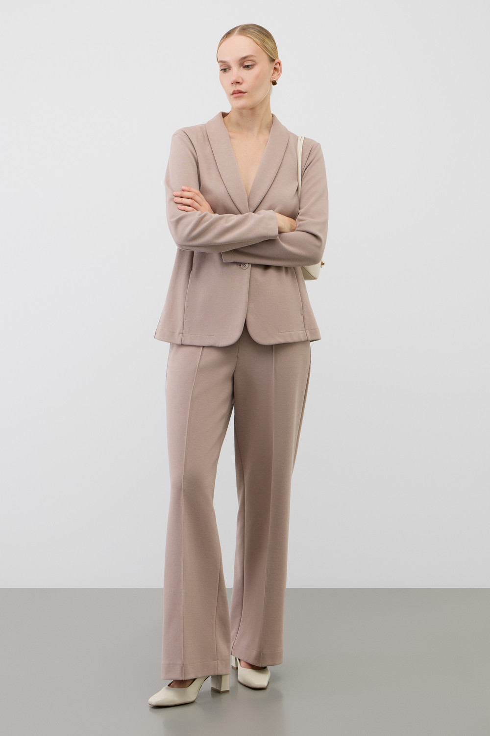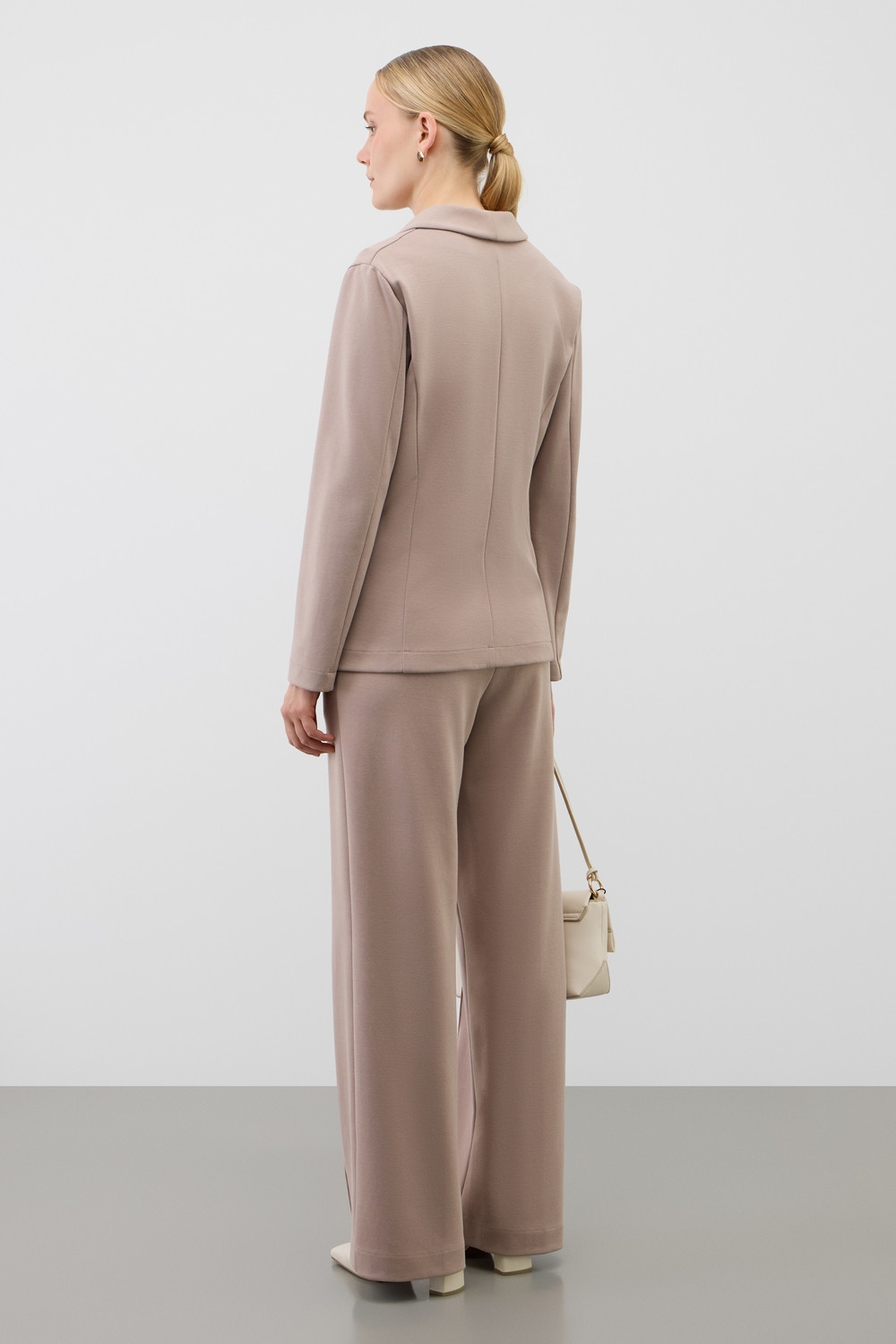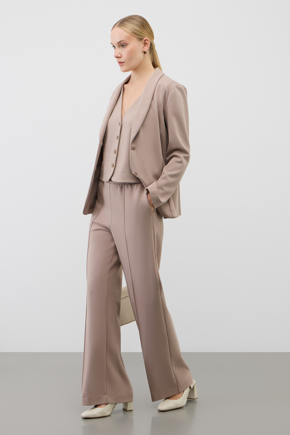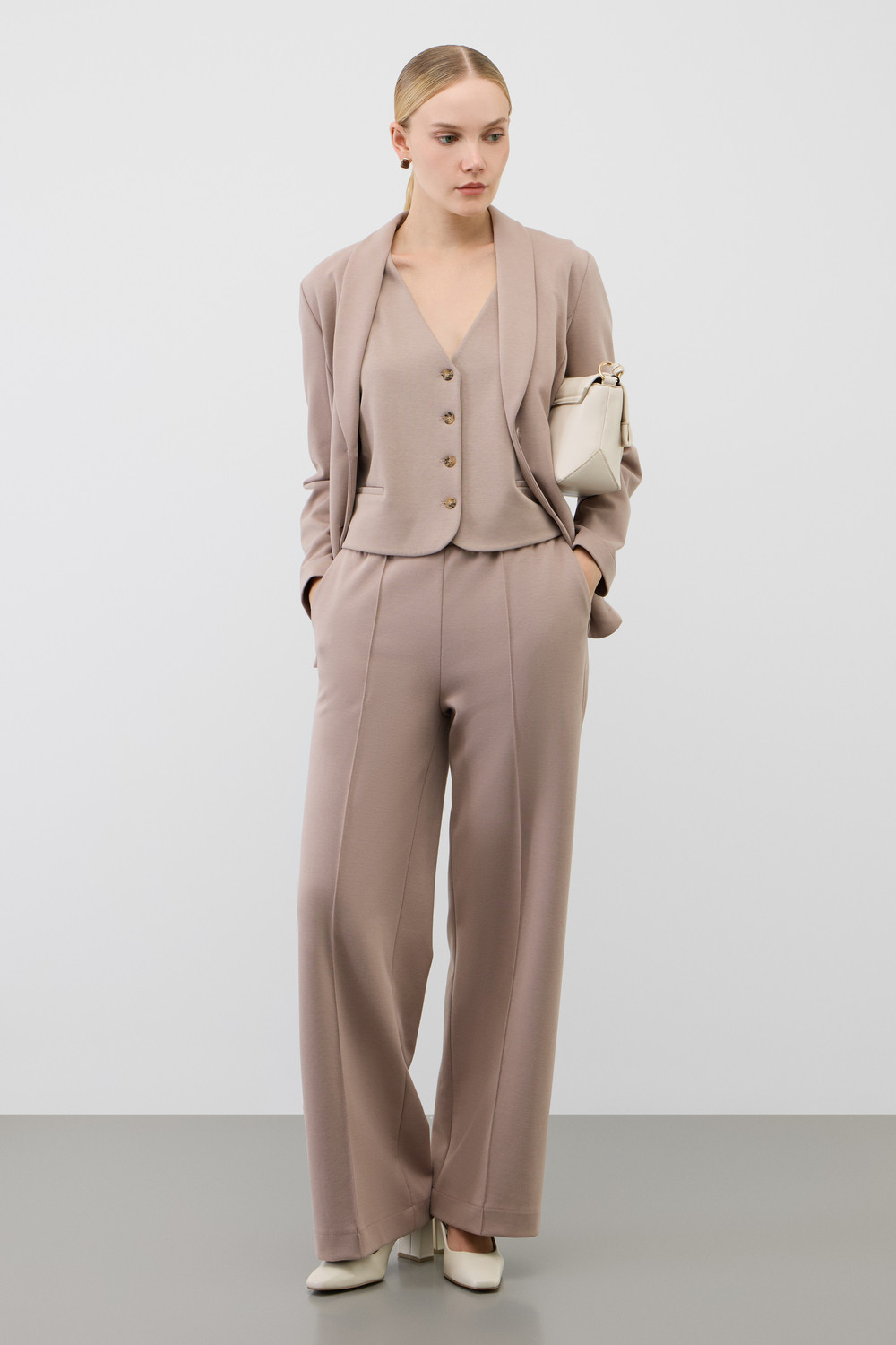 Брюки из премиального трикотажа прямого кроя создают расслабленный образ, который подходит как для повседневной носки, так и для более формальных мероприятий за счет стрелок. Удобные карманы добавляют практичности.