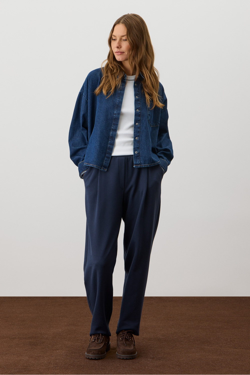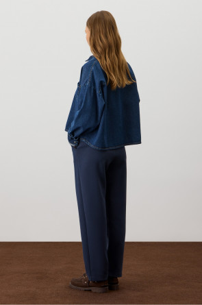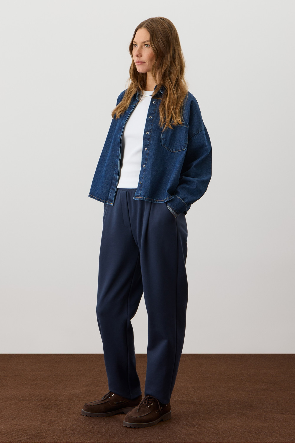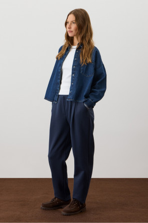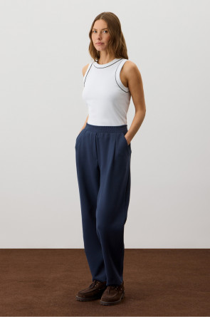 Брюки из мягкого хлопка являются универсальным элементом в гардеробе. Защипы спереди создают текстуру и визуальную динамику, а имитация гульфика придает брюкам классический вид.