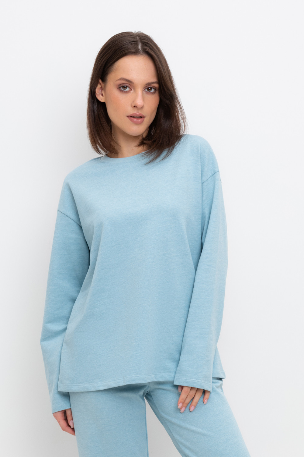 Однотонный джемпер из мягкого петельчатого футера. В составе 70% натурального хлопка и 30% полиэстра. Свободная посадка придаёт джемперу объём. Идеальный и комфортный вариант на каждый день.