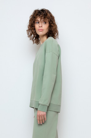 Однотонный джемпер из мягкого петельчатого футера из натурального хлопка. Свободная посадка придаёт джемперу объём. Идеальный и комфортный вариант на каждый день.