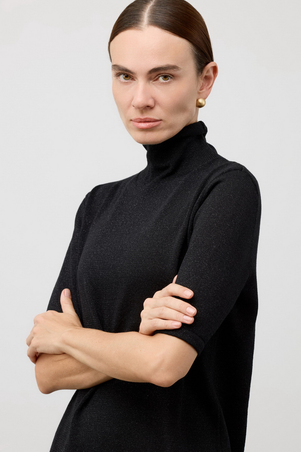 Невесомый вязаный джемпер из премиальной пряжи, созданный с использованием инновационной технологии смешанного волокна. Деликатное сочетание шерсти и акрила обеспечивает непревзойденный комфорт: изделие нежно облегает фигуру, гарантирует мягкость прикосновения и сохраняет безупречную форму.