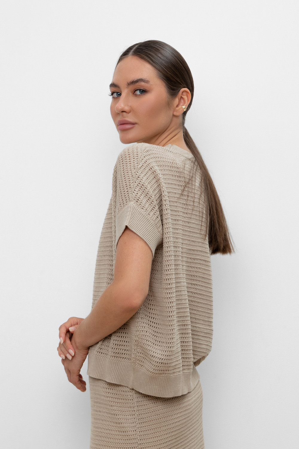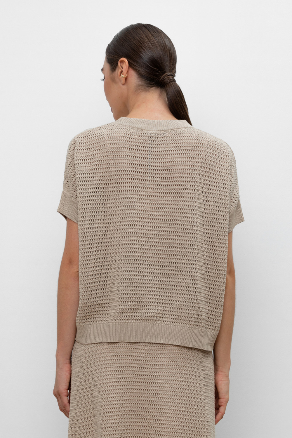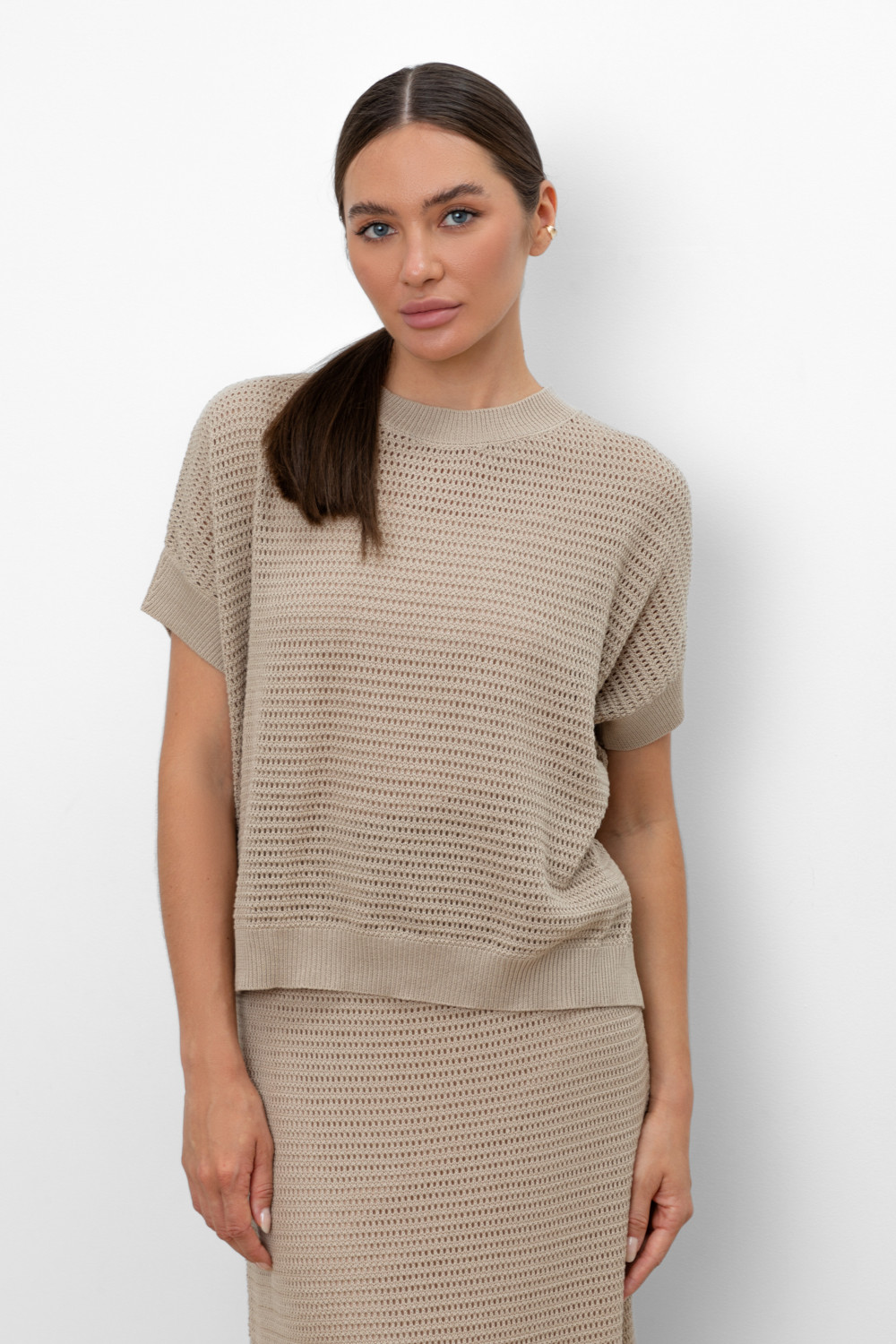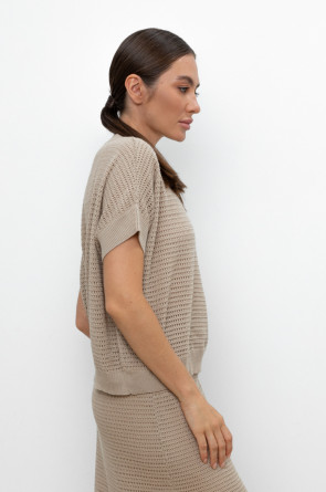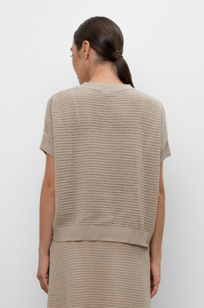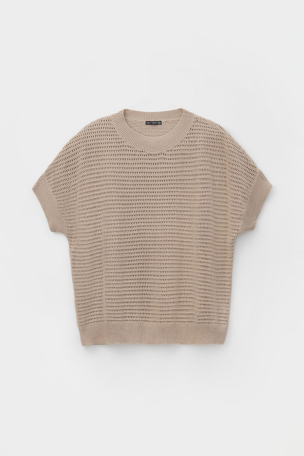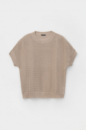 Укороченный вязаный ажурный джемпер. Состав 50% хлопок, 50% акрил. Благодаря акрилу в составе изделие не пилингуется.