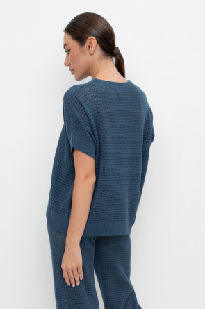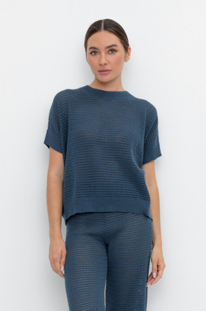 Укороченный вязаный ажурный джемпер. Состав 50% хлопок, 50% акрил. Благодаря акрилу в составе изделие не пилингуется.