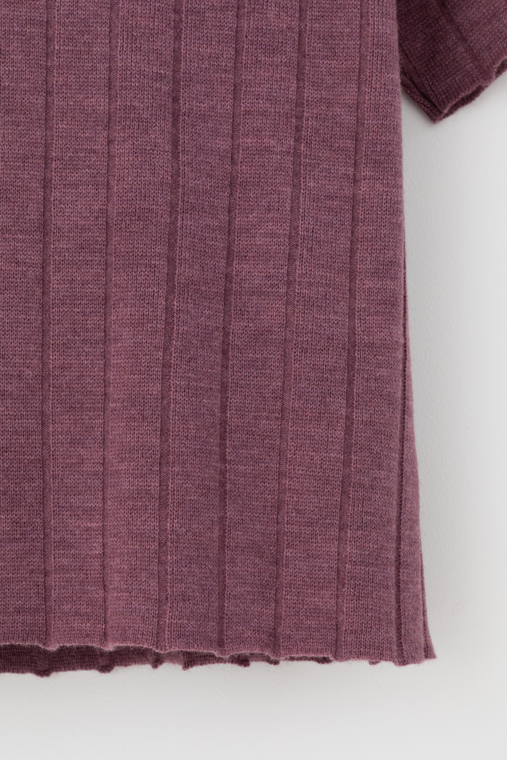 Поло свободного силуэта с короткими рукавами из полушерстяной пряжи. Спущенное плечо и прямой силуэт придают изделию свободный объем.