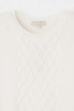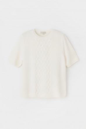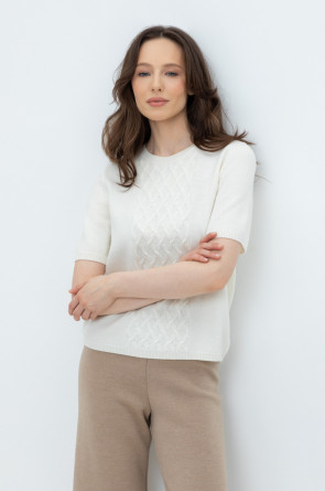 Джемпер с красивым вывязанным узором в стиле прямой футболки с короткими рукавами из мягкой полушерстяной пряжи. Прямой силуэт, стандартная длина. Шерсть в составе сохраняет тепло, а благодаря волокнам акрила изделие мягкое и дольше сохраняет форму.