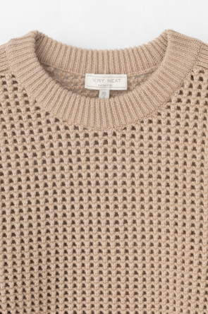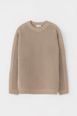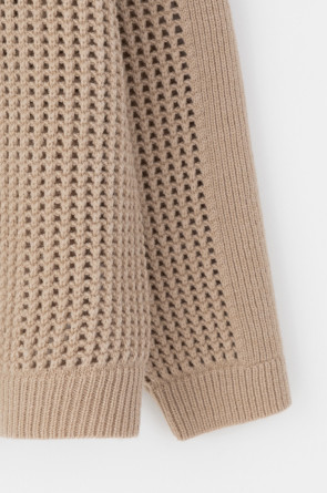 Вязаный джемпер из шерсти с добавлением акрила. Ажурная вязка, манжеты и нижний край не растянутся благодаря вывязанной резинке.
