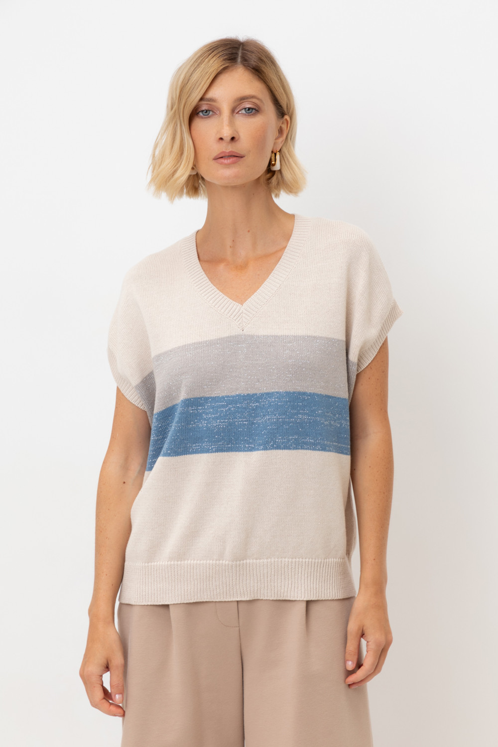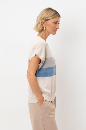 Гладкий джемпер из нежной хлопковой пряжи свободного кроя с вплетёнными нитями метанита.