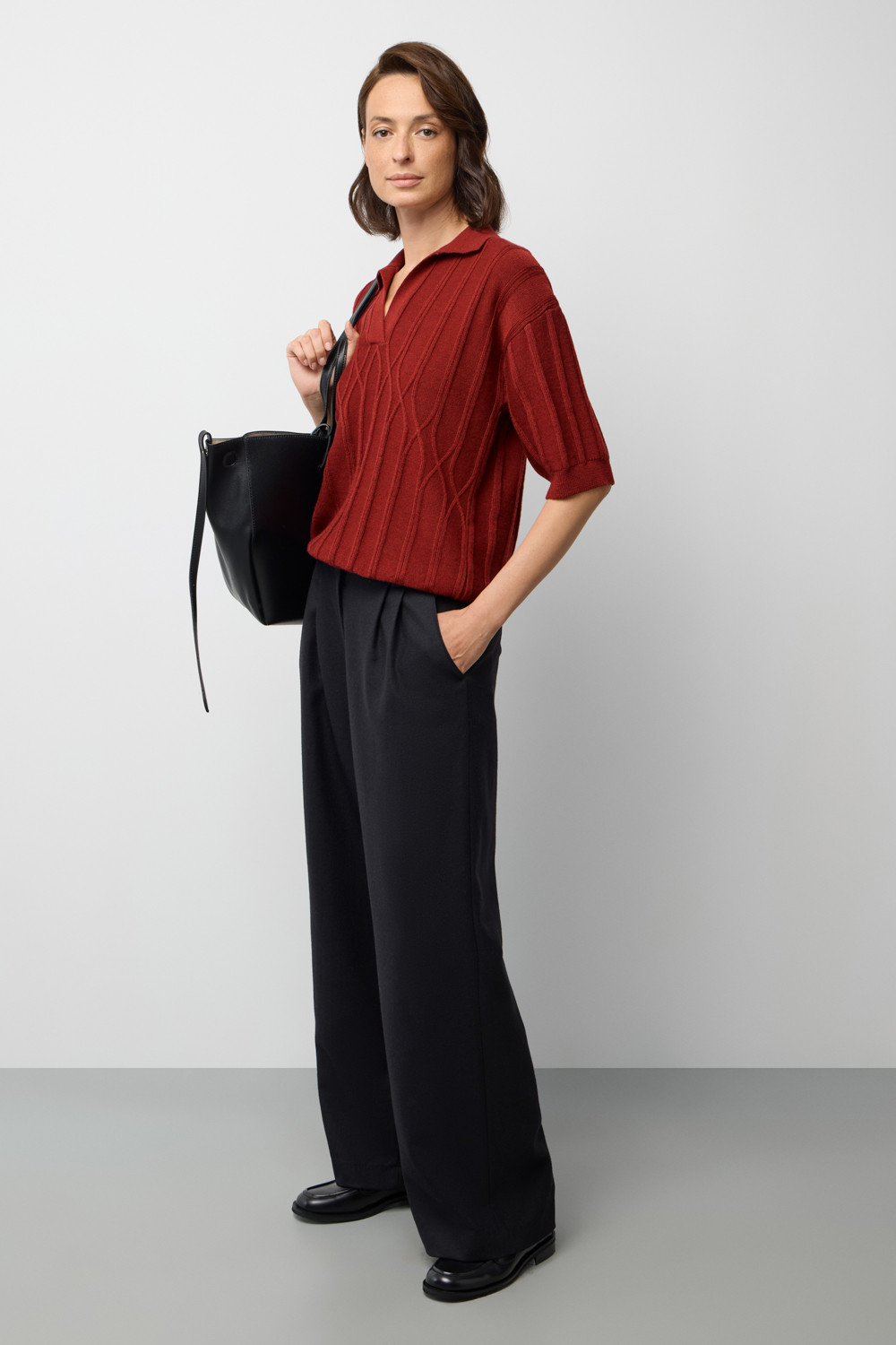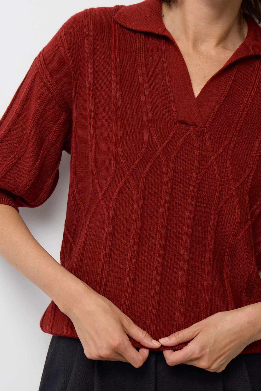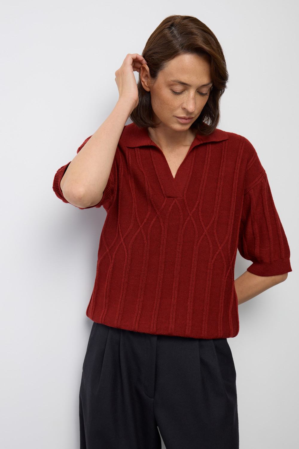 Джемер-поло из высококачественного австралийского мериноса. Спущенное плечо и свободный крой делают джемпер идеальным для повседневной носки.Состав является гипоаллергенным и способствует отличному сохранению формы изделия.