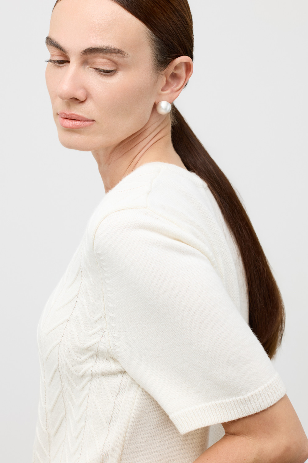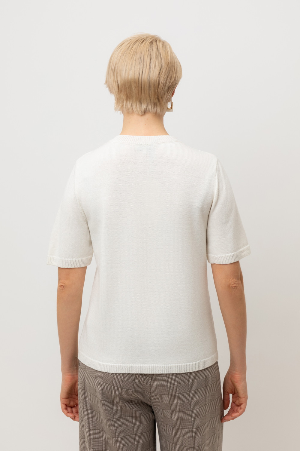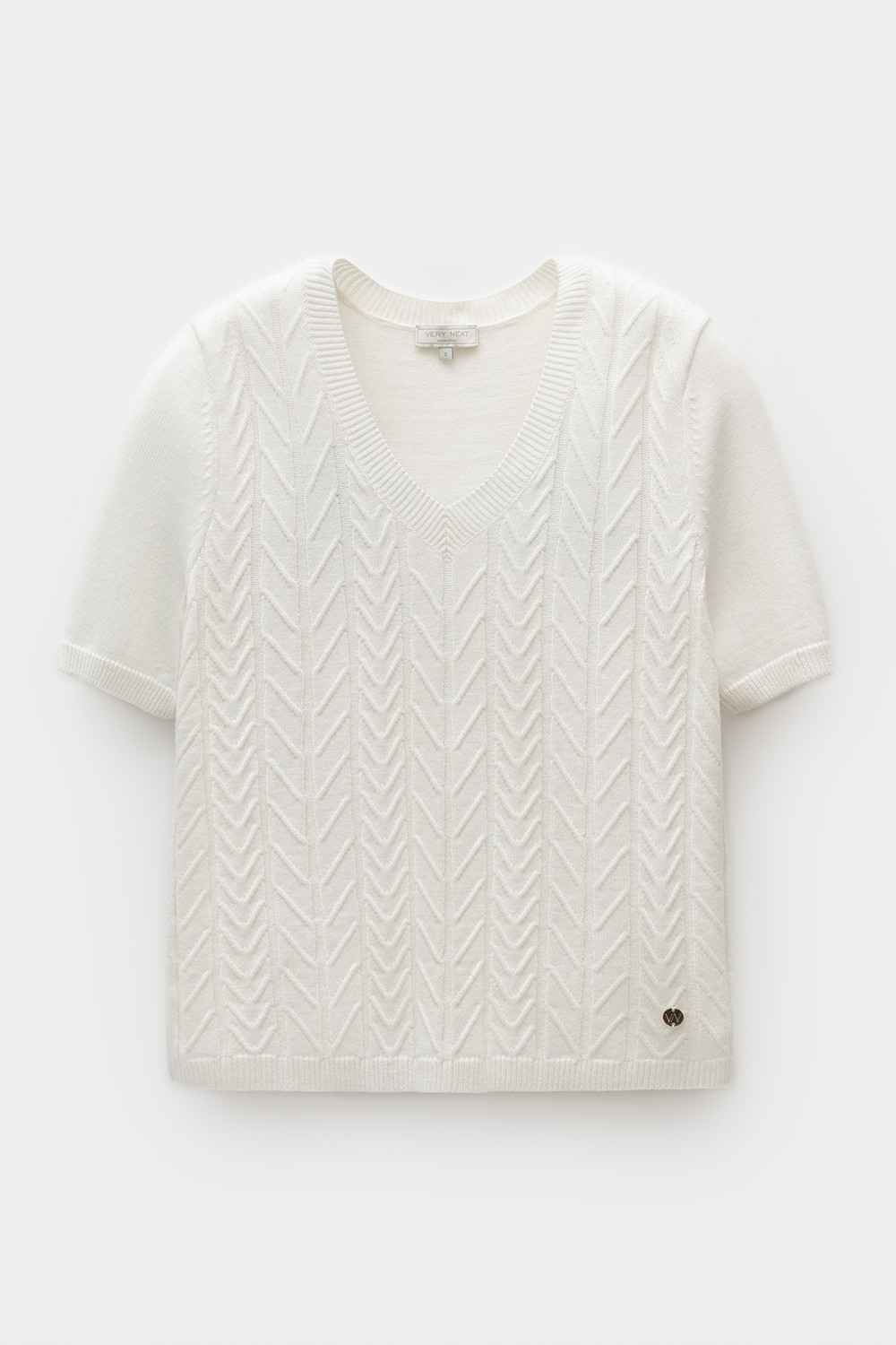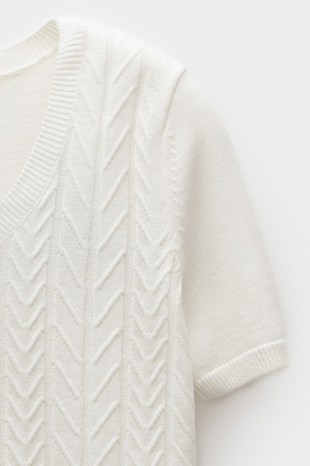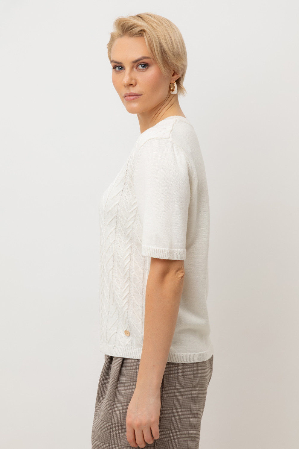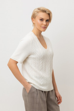Короткий рукав и рельефная текстура придают джемперу современный вид, идеально сочетающийся с различными стилями одежды.