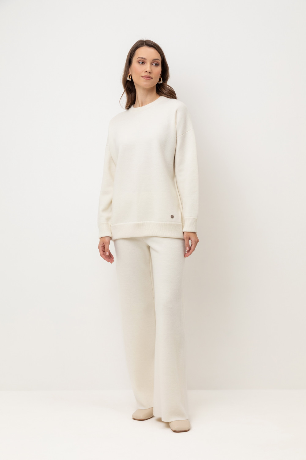 Мягкий вязаный джемпер из премиальной пряжи, созданный с использованием инновационной технологии смешанного волокна. Деликатное сочетание шерсти и акрила обеспечивает непревзойденный комфорт: изделие нежно облегает фигуру, гарантирует мягкость прикосновения и сохраняет безупречную форму.