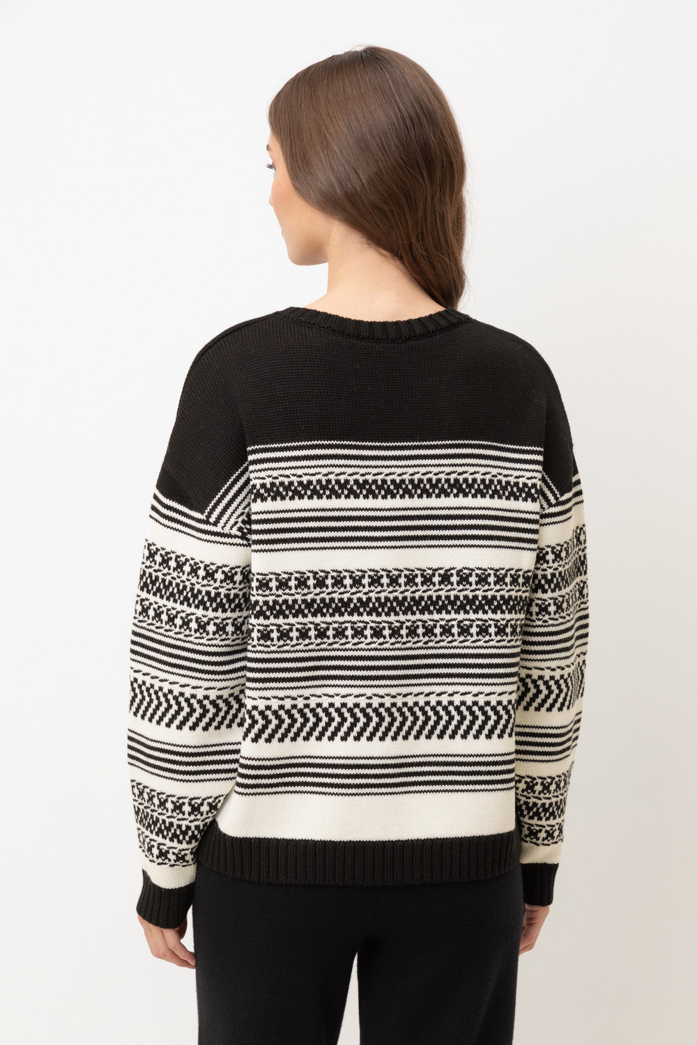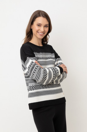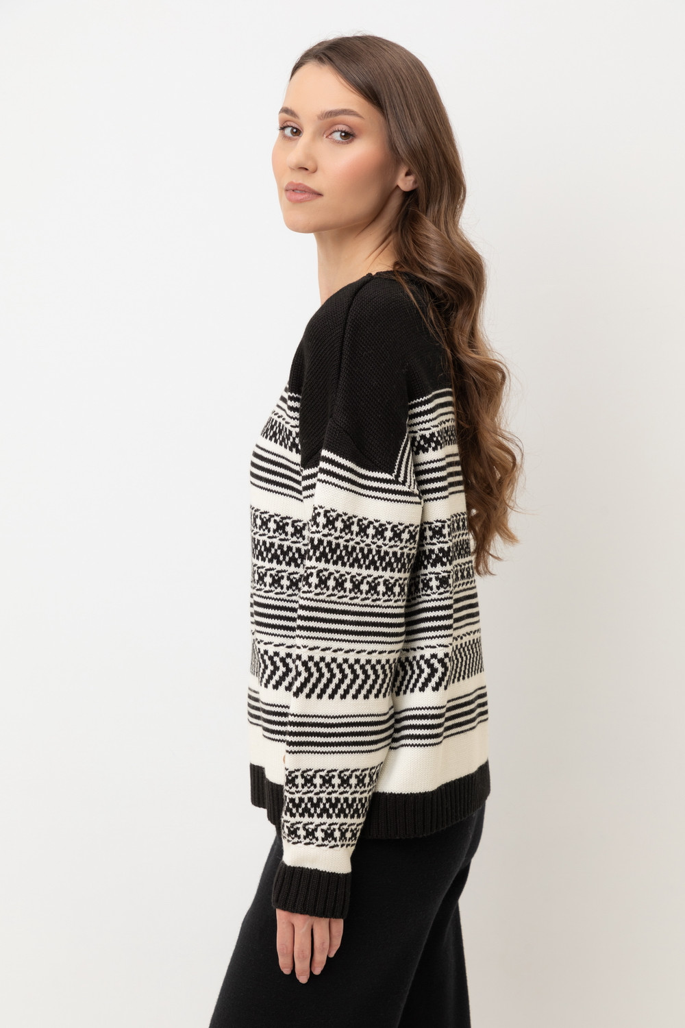 Мягкий джемпер в скандинаском стиле из премиальной пряжи, созданный с использованием инновационной технологии смешанного волокна. Деликатное сочетание шерсти и акрила обеспечивает непревзойденный комфорт: изделие нежно облегает фигуру, гарантирует мягкость прикосновения и сохраняет безупречную форму.
