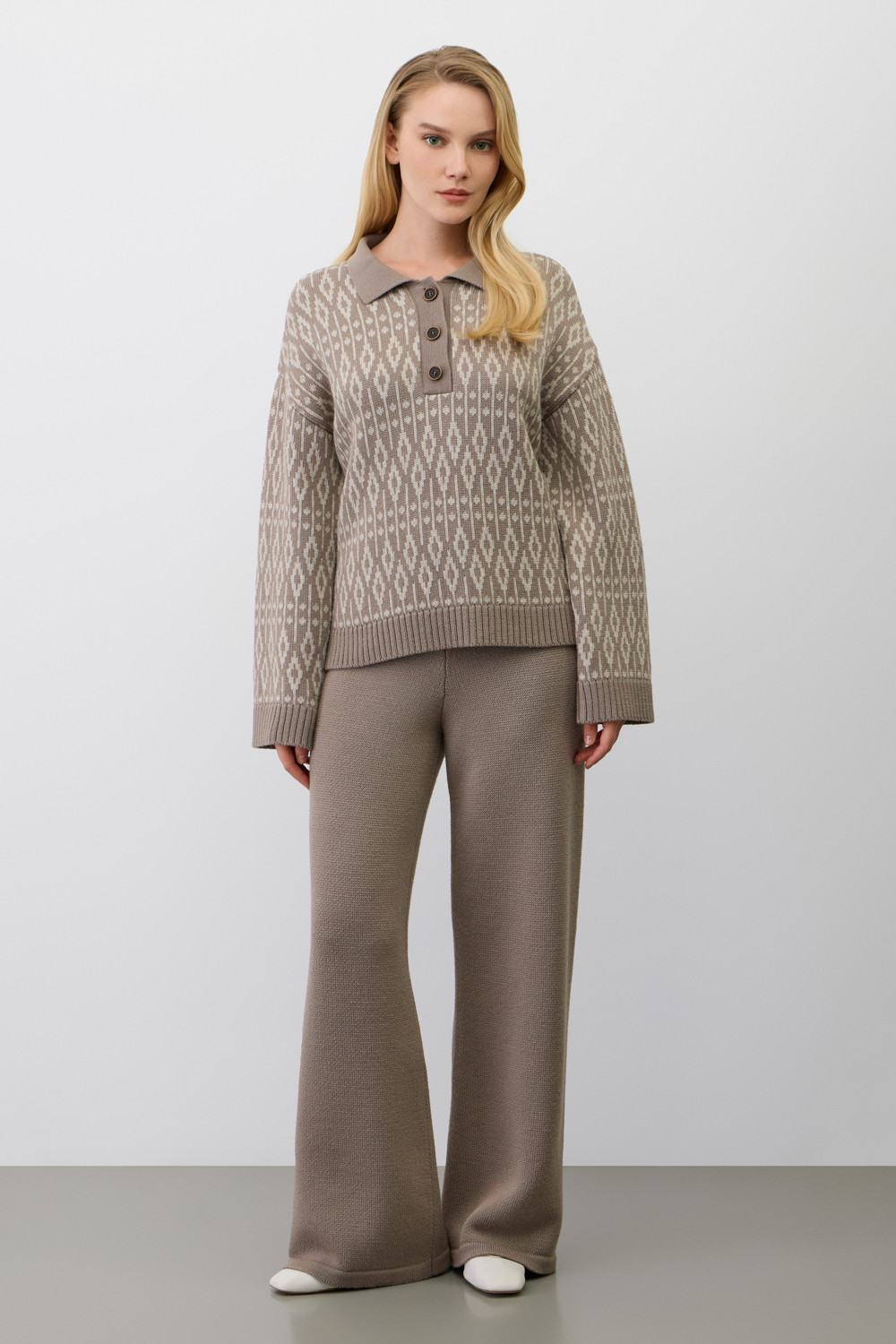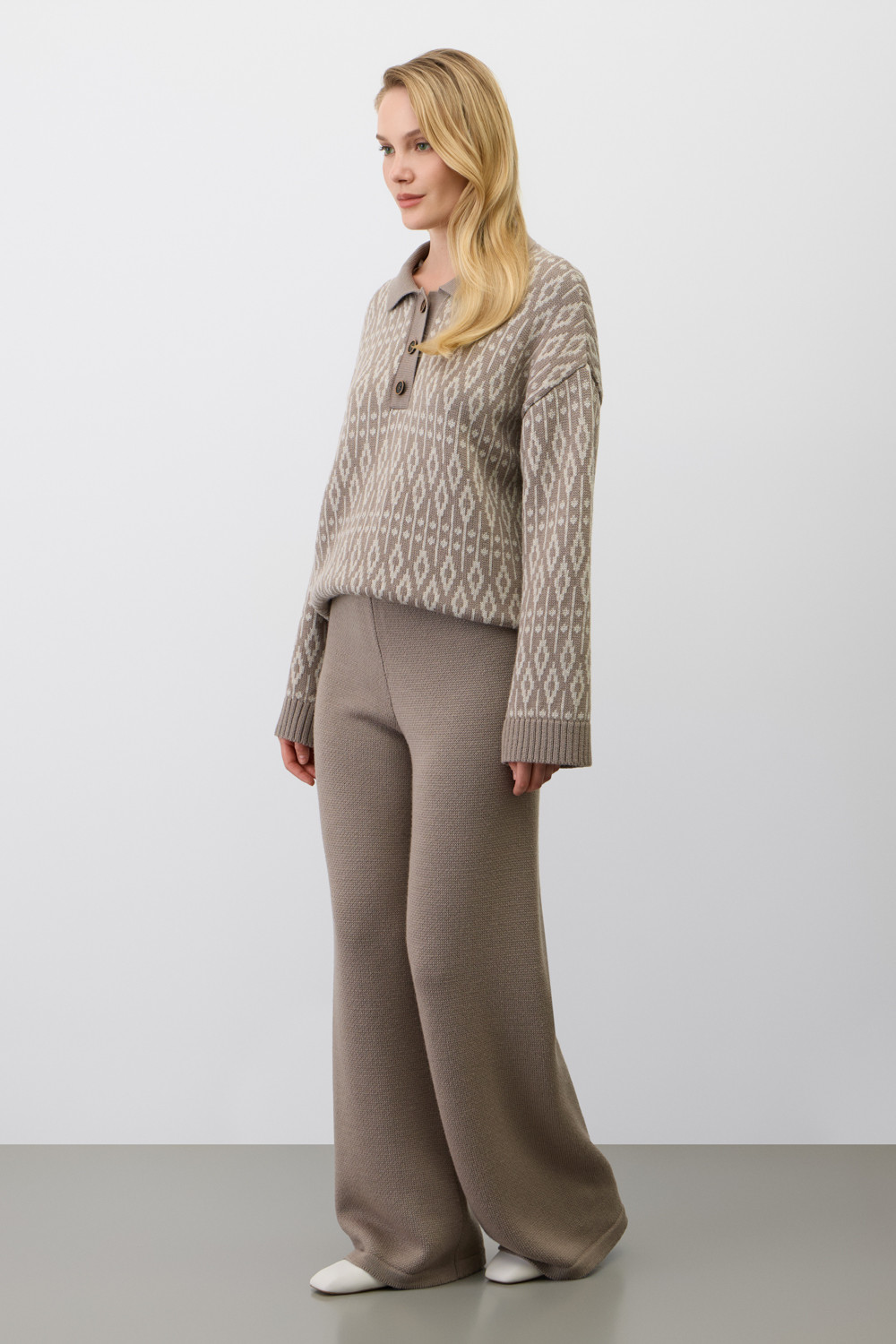Джемпер-поло в скандинавском стиле выполнен из материалов премиум-класса. Идеальное сочетание шерсти и акрила обеспечивает комфорт, нежно облегает тело, является гипоаллергеннным и прекрасно сохраняет свою форму.