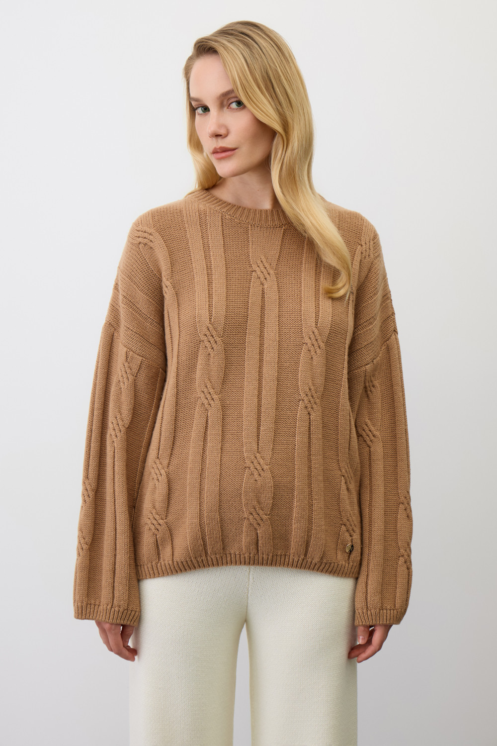 Мягкий джемпер, изготовленный из высококачественной пряжи. Уникальное сочетание шерсти и акрила дарит ощущение уюта, приятно прилегает к телу, является гипоаллергенным и отлично сохраняет форму.