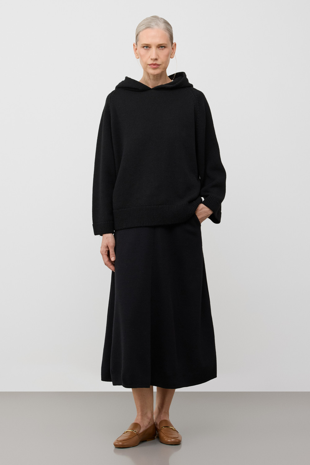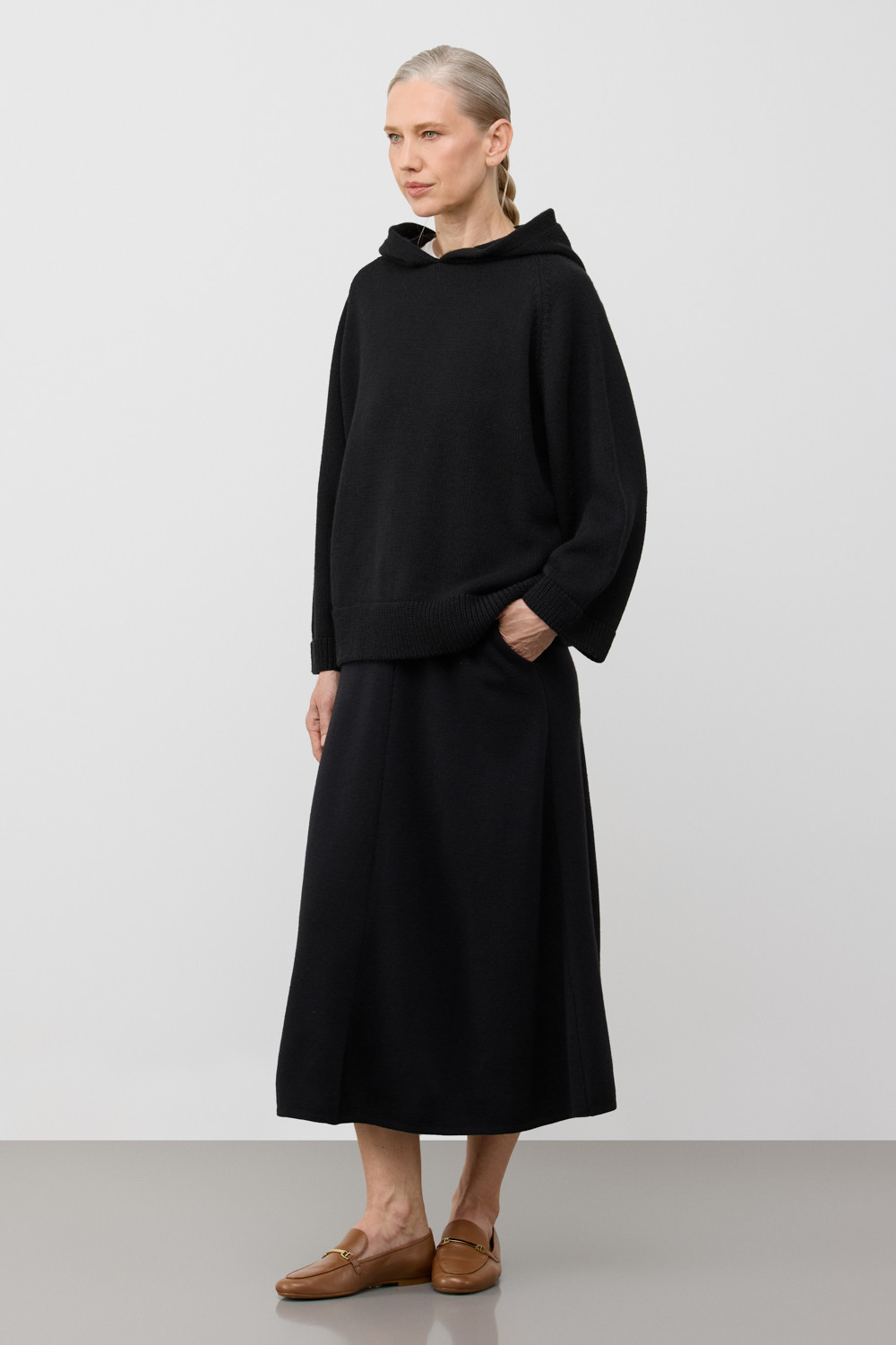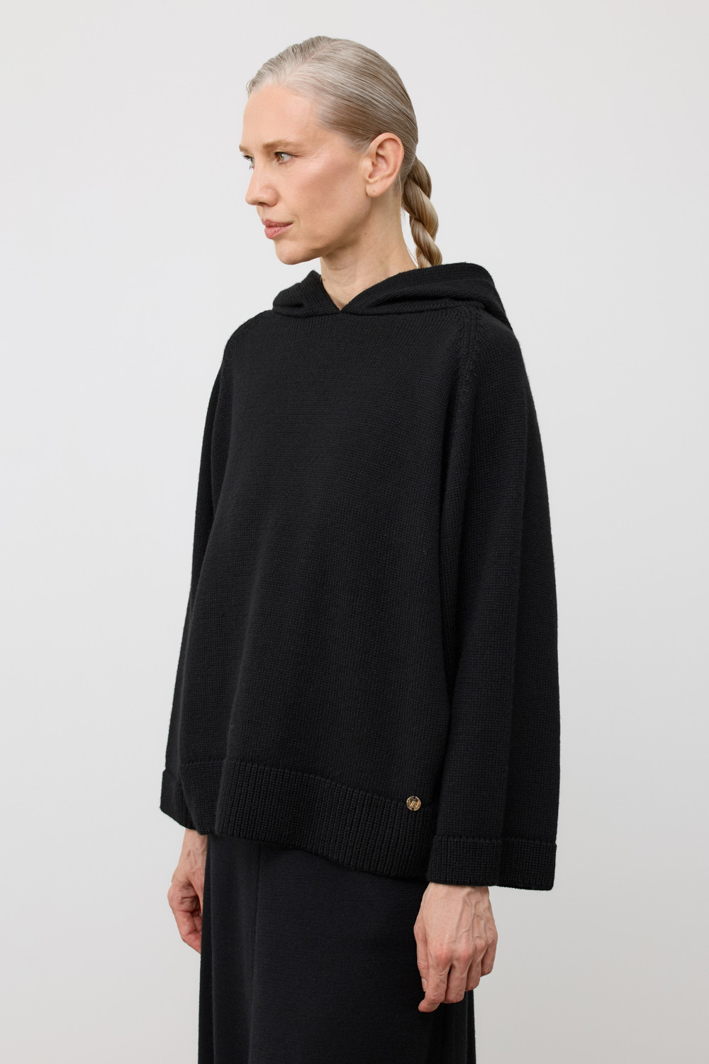 Мягкий джемпер с капюшоном, изготовленный из высококачественной пряжи. Уникальное сочетание шерсти и акрила дарит ощущение уюта, приятно прилегает к телу, является гипоаллергенным и отлично сохраняет форму. Капюшон добавляет стильную особенность изделию и становится практичным дополнением для ветренной погоды.